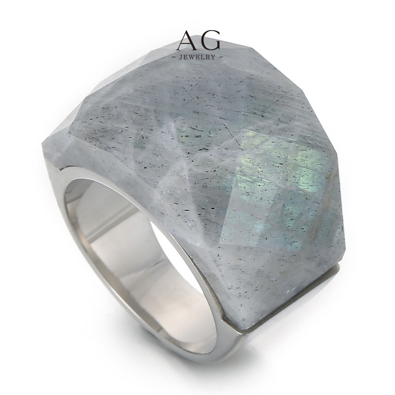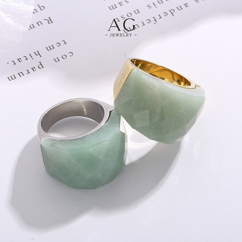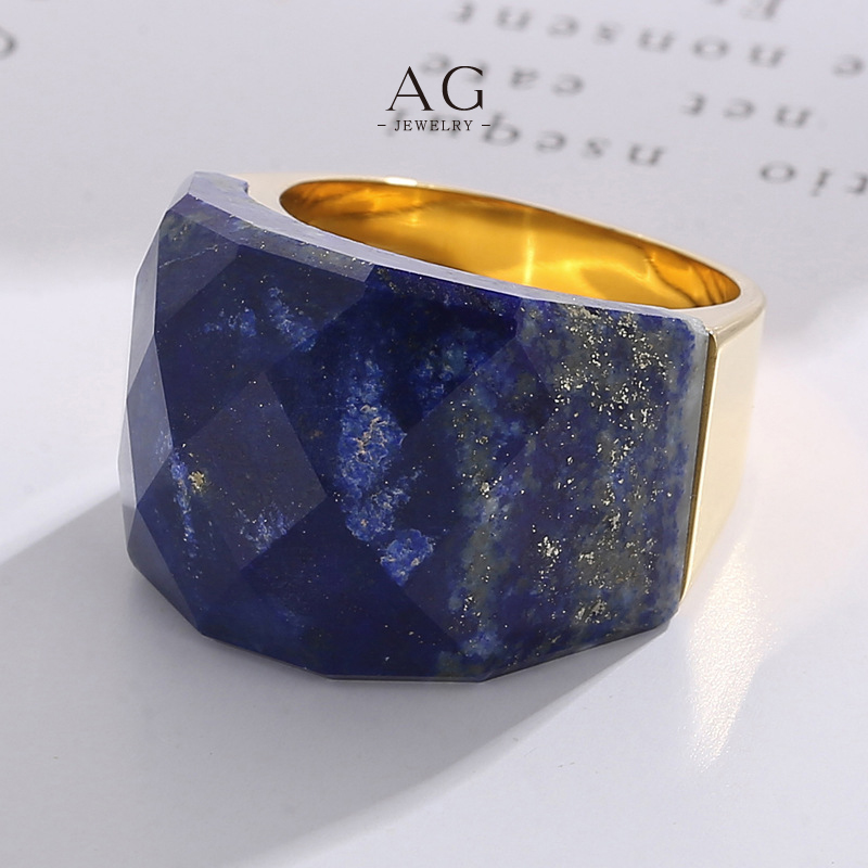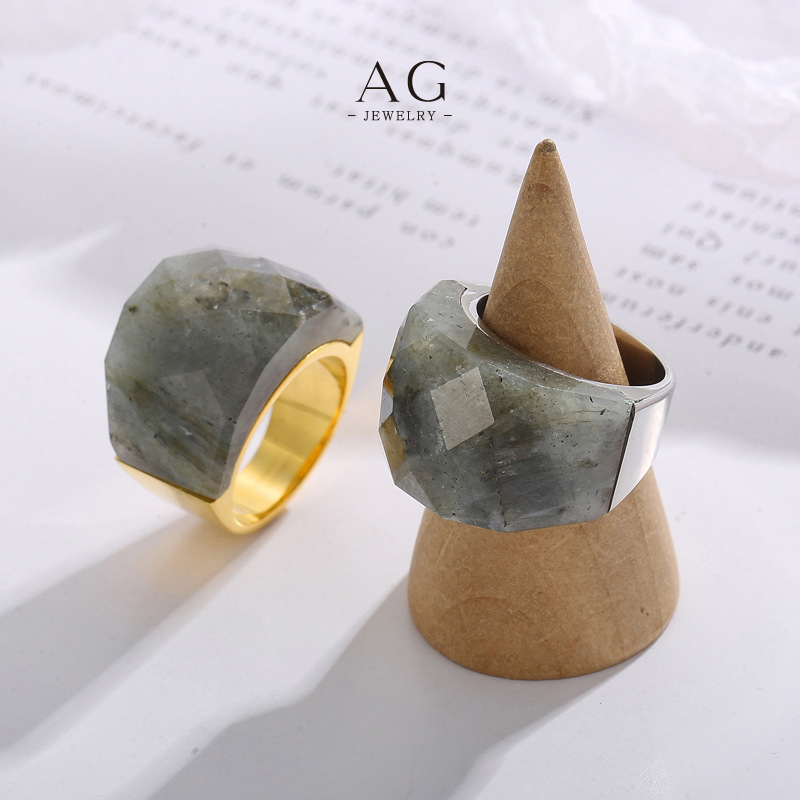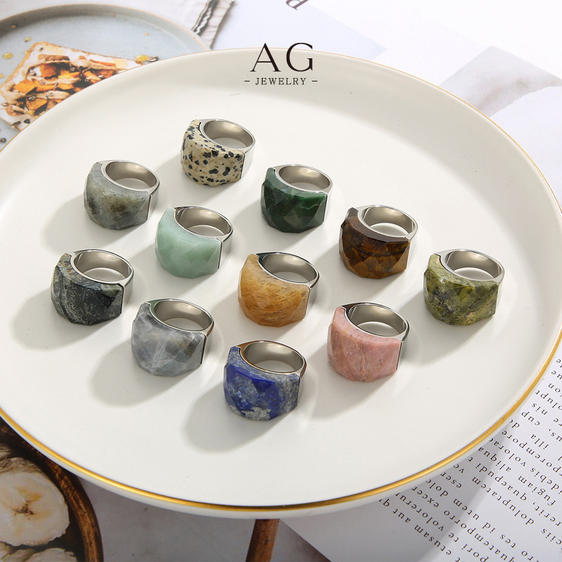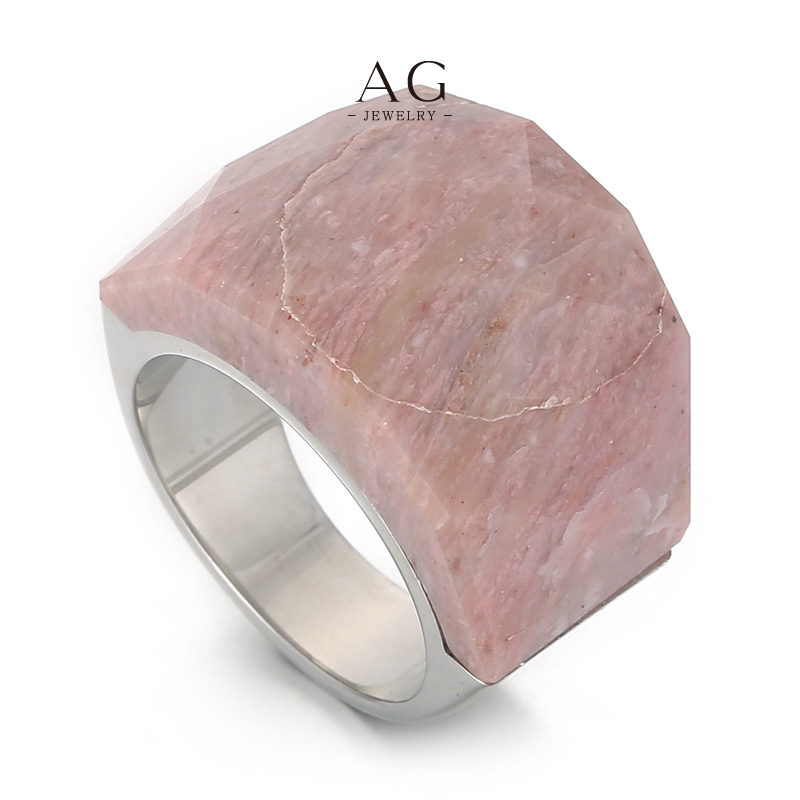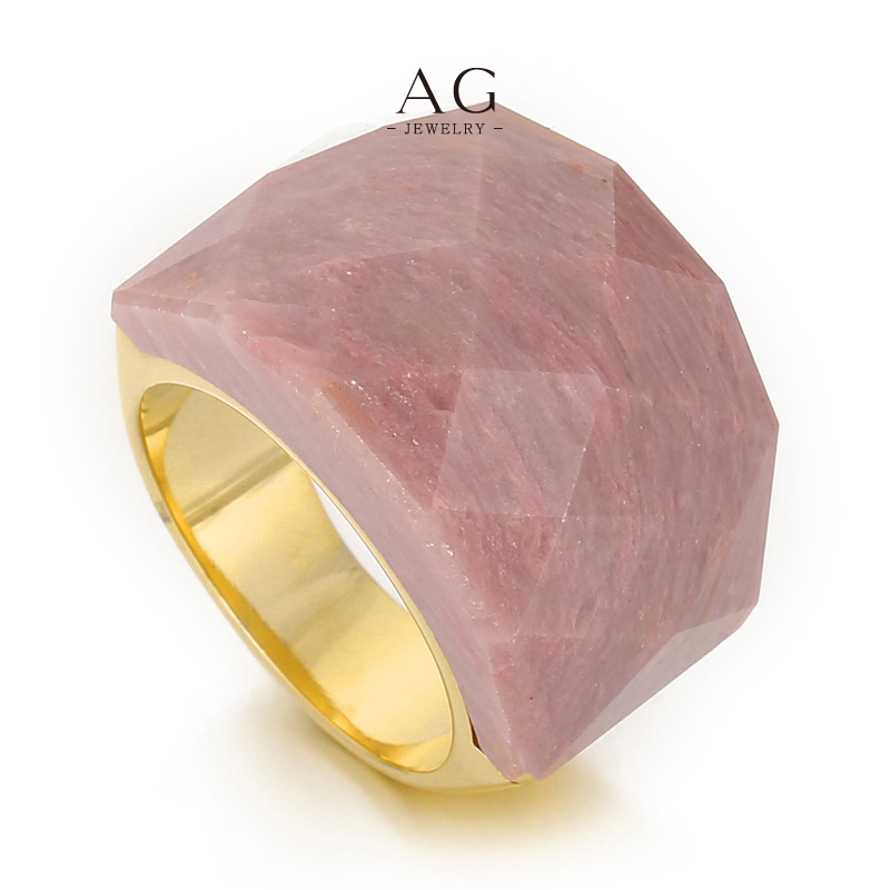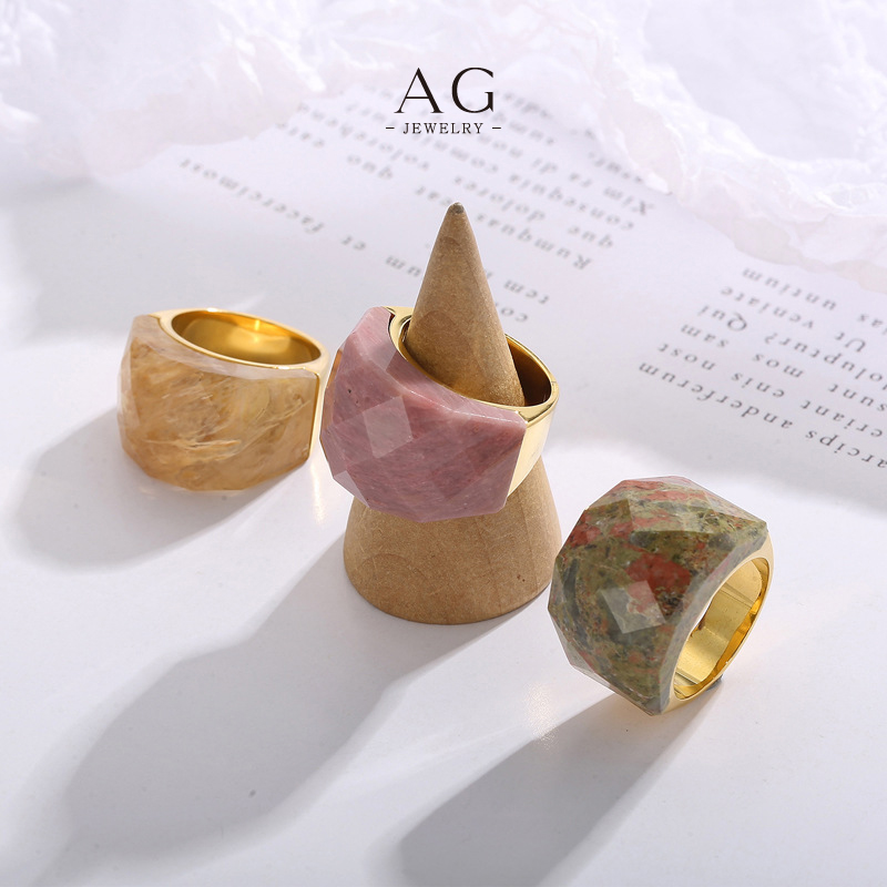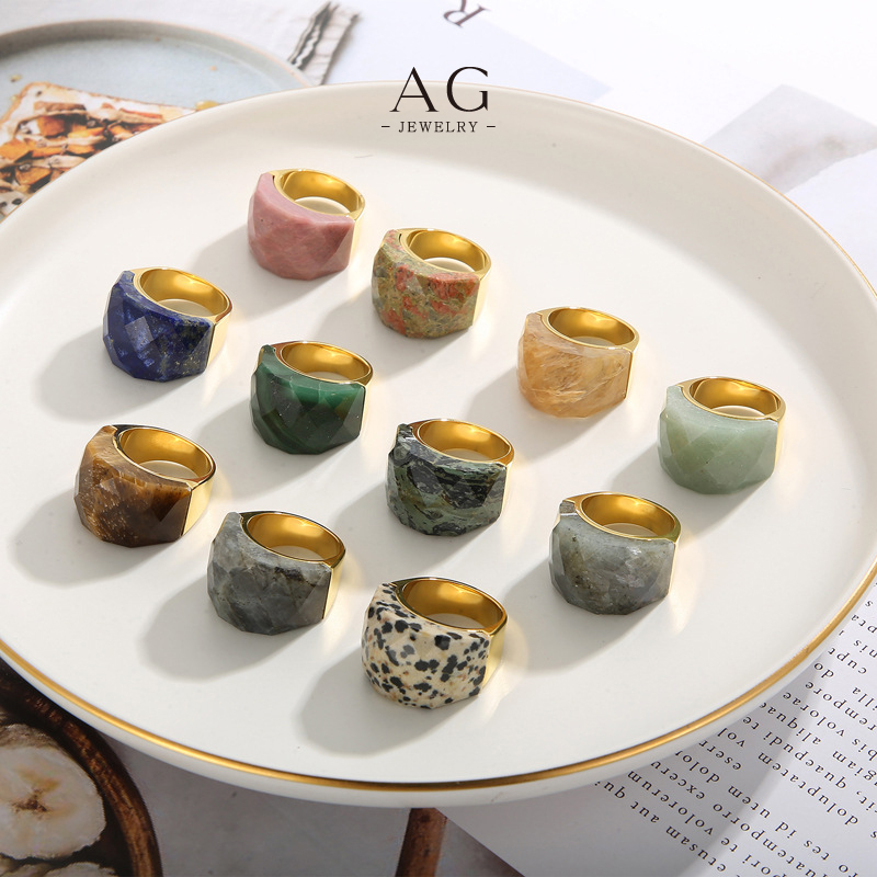 AG Rose Quartz Lapis Lazuli Moonstone Inlaid Mosaic Ring Healing Crystal Cluster Jewelry Line OEM Manufacturer AG82734