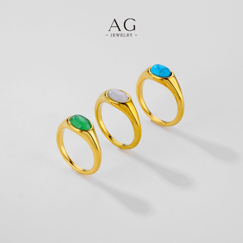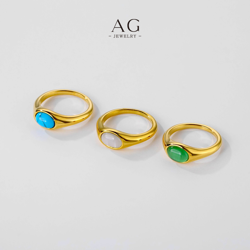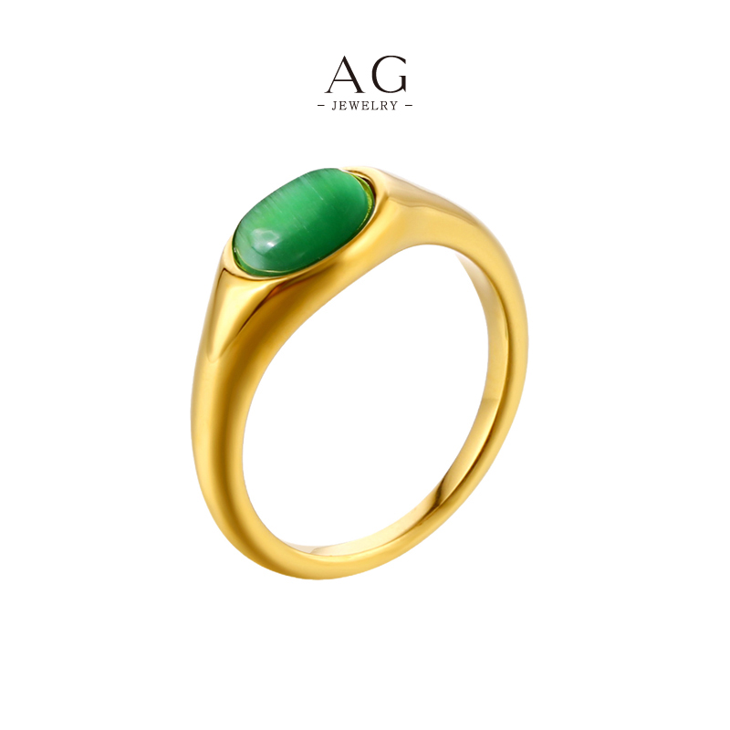 AG Cat‘s Eye Turquoise Green Agate Statement Ring Protective Gemstone Trio Jewelry Line Bulk Order Supplier AG20476