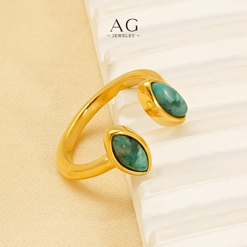 AG Turquoise Agate Statement Ring Earth Tone Gemstone Jewelry Line OEM Service AG1149