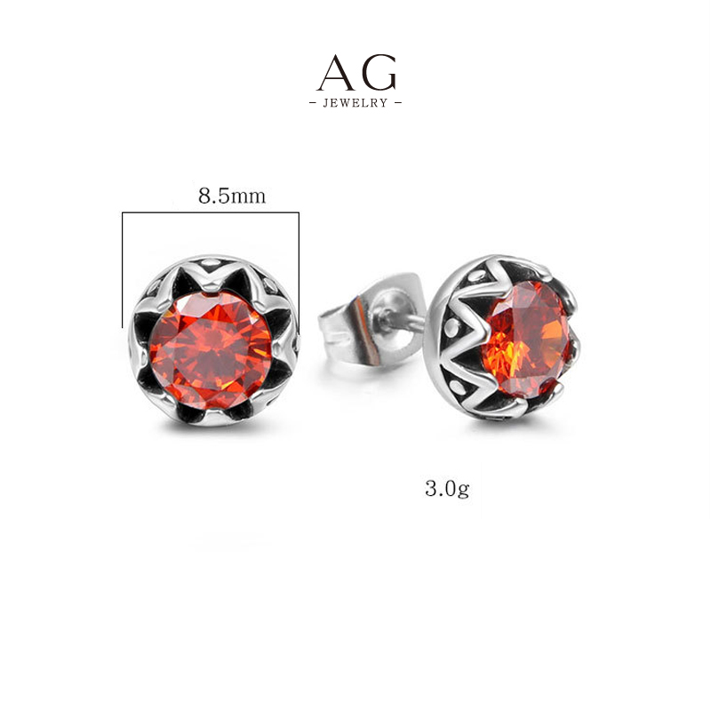 AG Men‘s Vintage Black Orange Zirconia Stud Earrings Retro Color Block Line Custom Manufacturer AGCF118