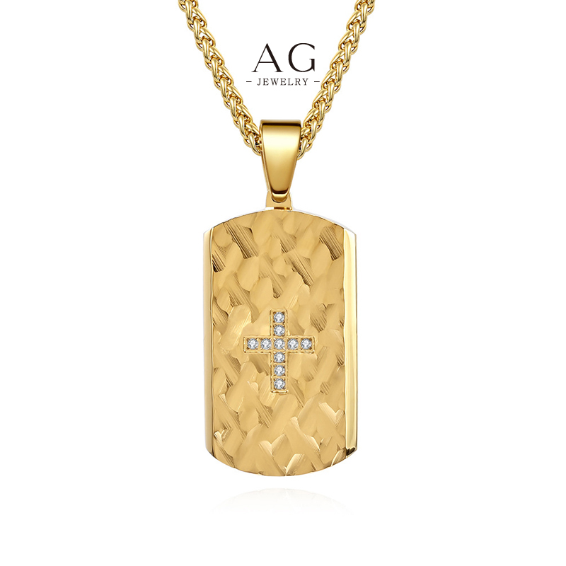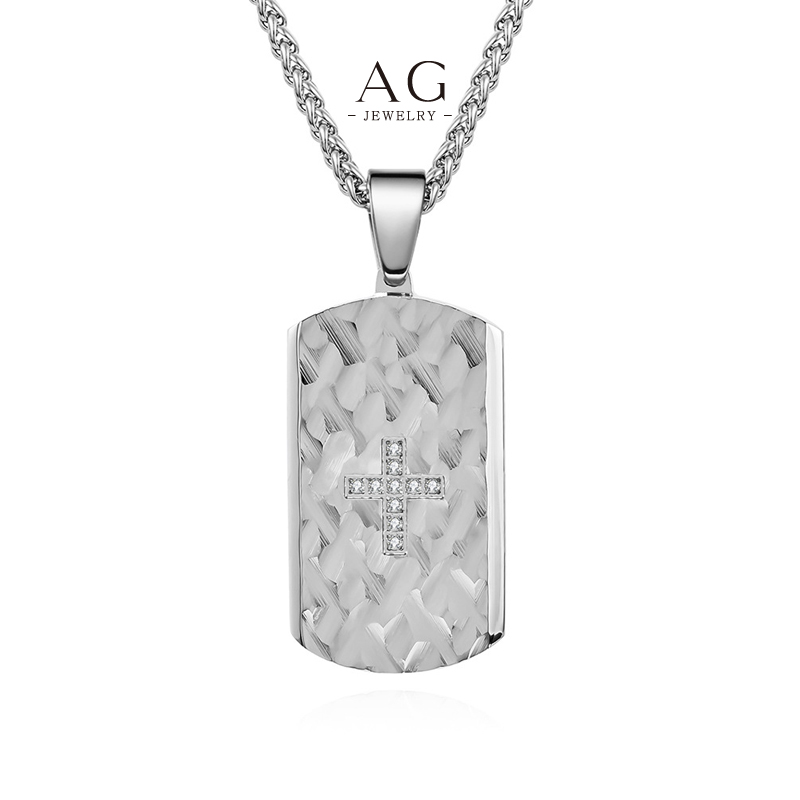 AG Men’s Stainless Steel Square Plaque Cross Zirconia Pendant Necklace Custom Manufacturer Small MOQ AGDZ148