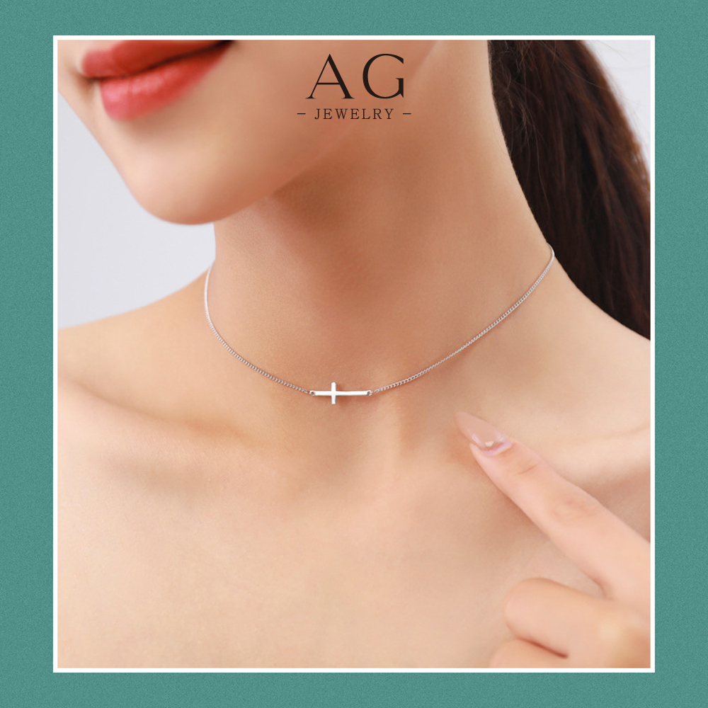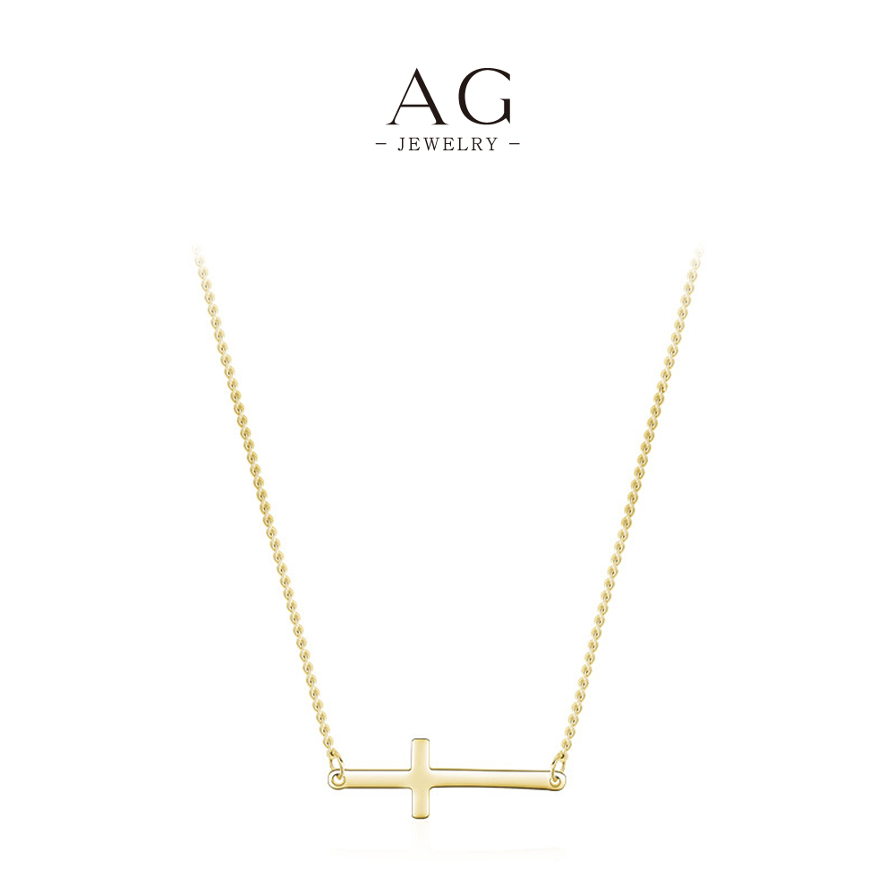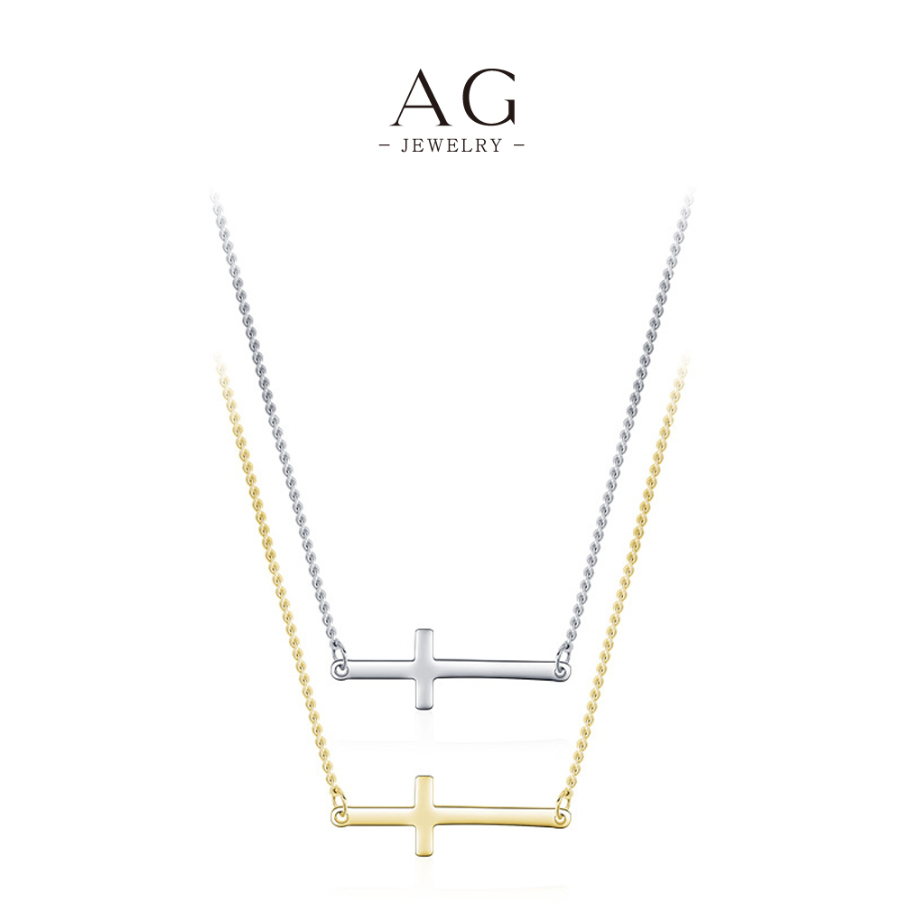 AG Horizontal Cross Pendant Necklace 925 Sterling Silver Modern Christian Jewelry AGRHN835