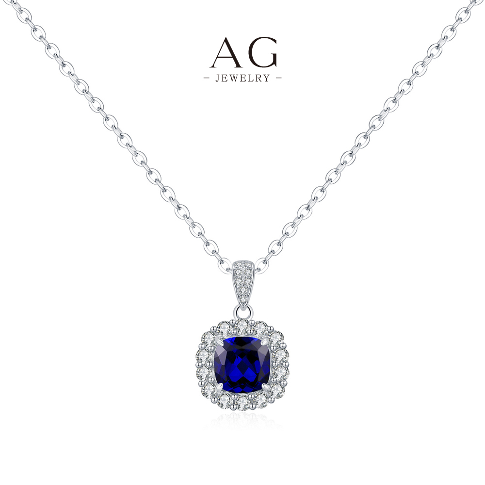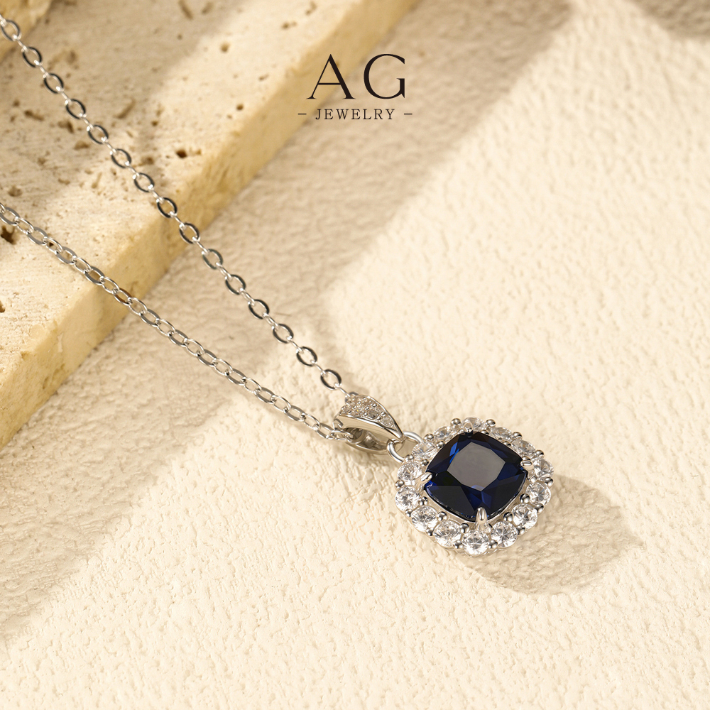AG Deep Blue Zircon Statement Necklace 925 Sterling Silver Vintage Style Jewelry AGRHN1923
