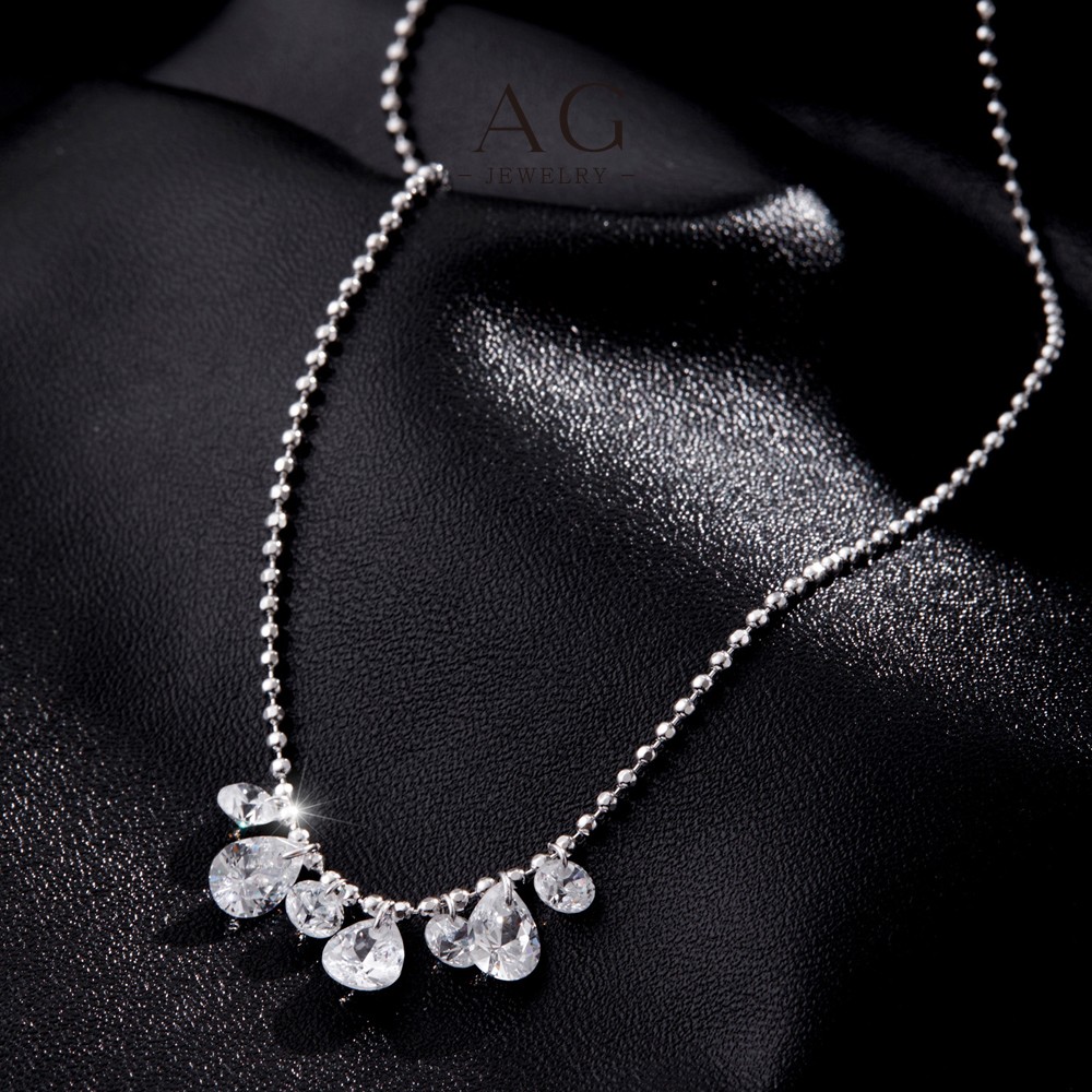 AG Luxury Crystal Zircon Wedding Necklace 925 Sterling Silver Bridal Tiara Collection AGRHN1831