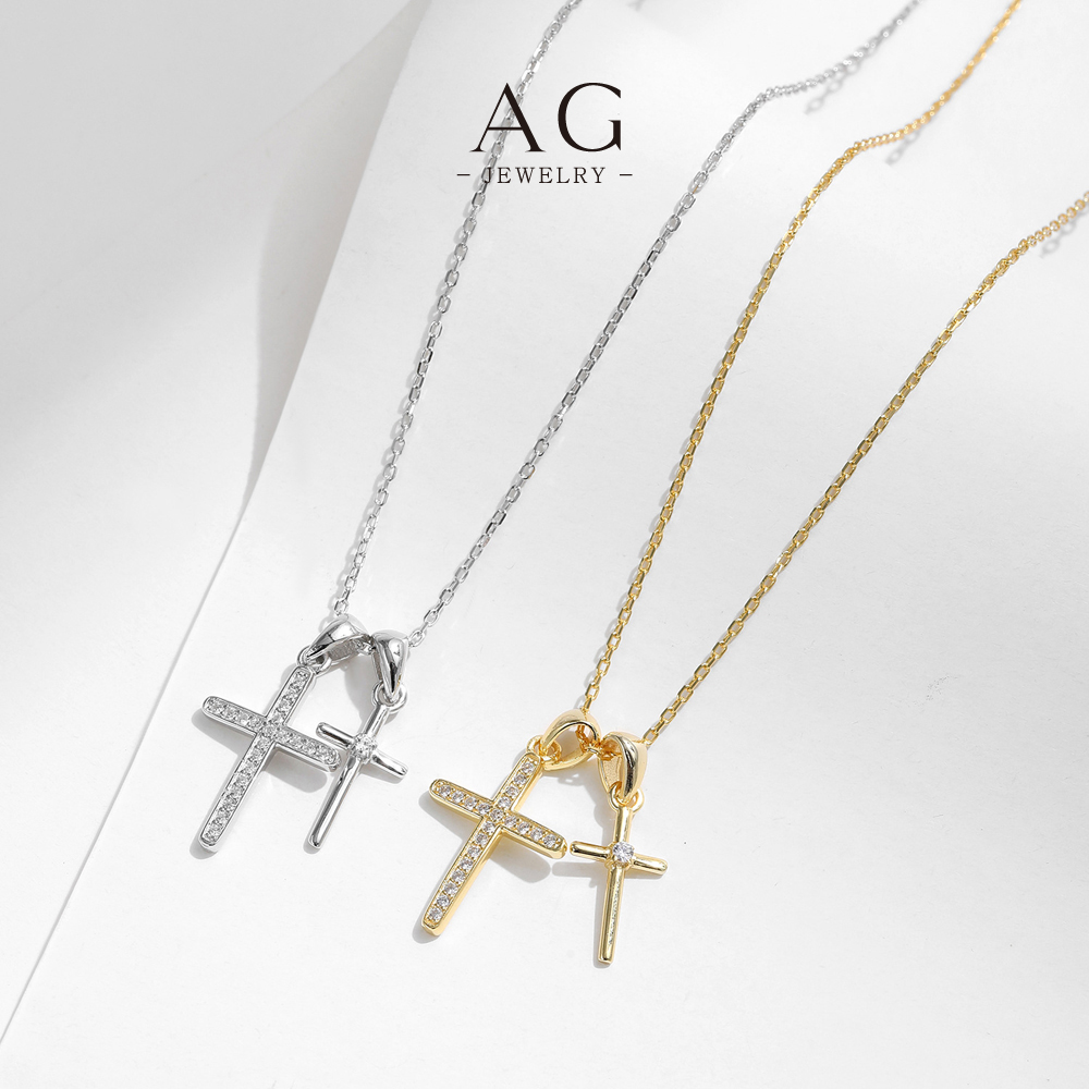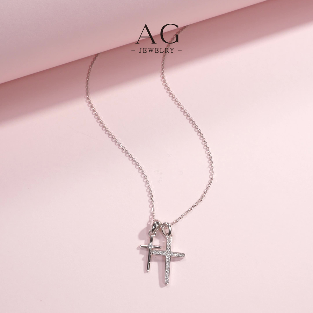 AG 925 Silver Round and Baguette Zircon Necklace Modern Statement Piece AGRHN1749