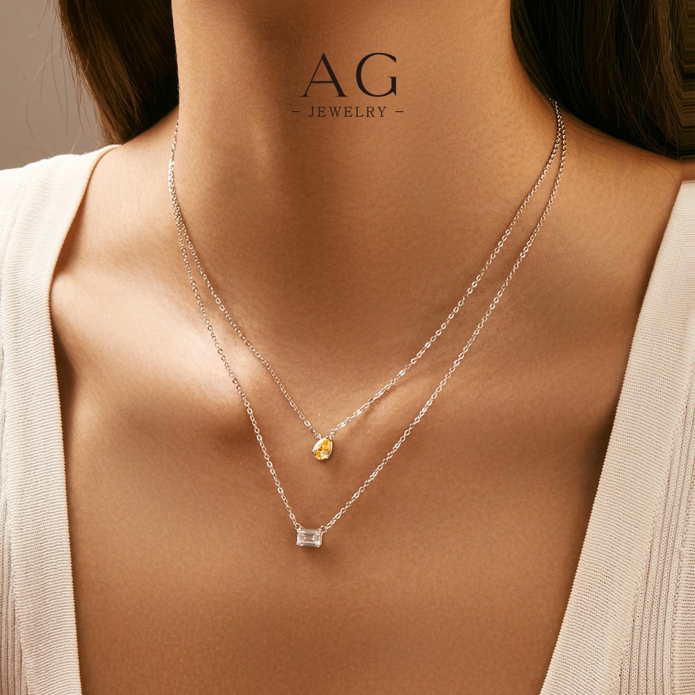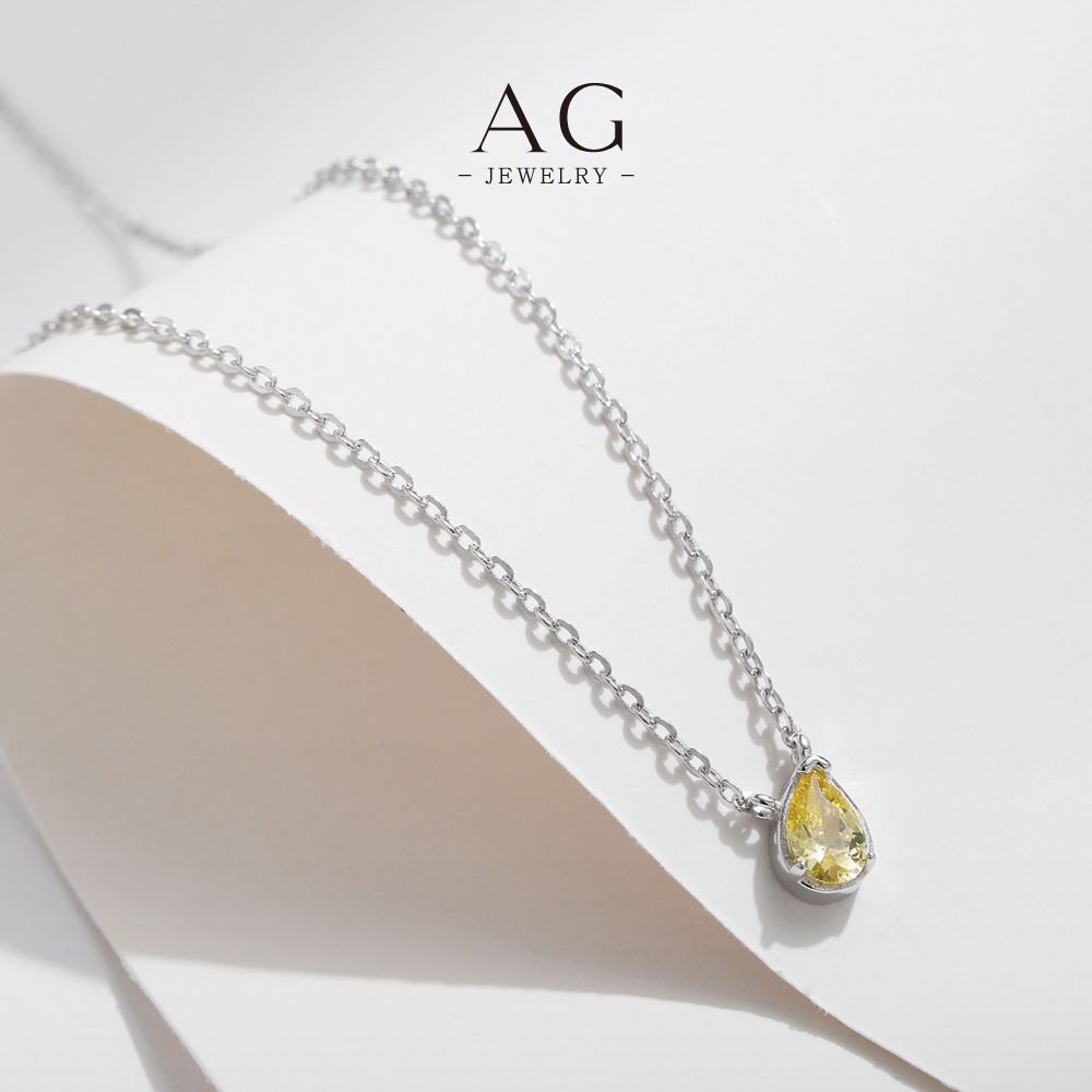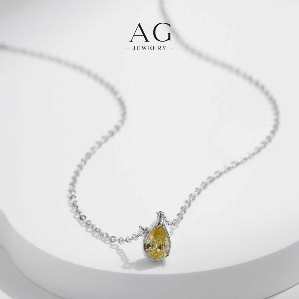 AG 925 Silver Teardrop Champagne Zircon Pendant Necklace for Women AGRHN1630