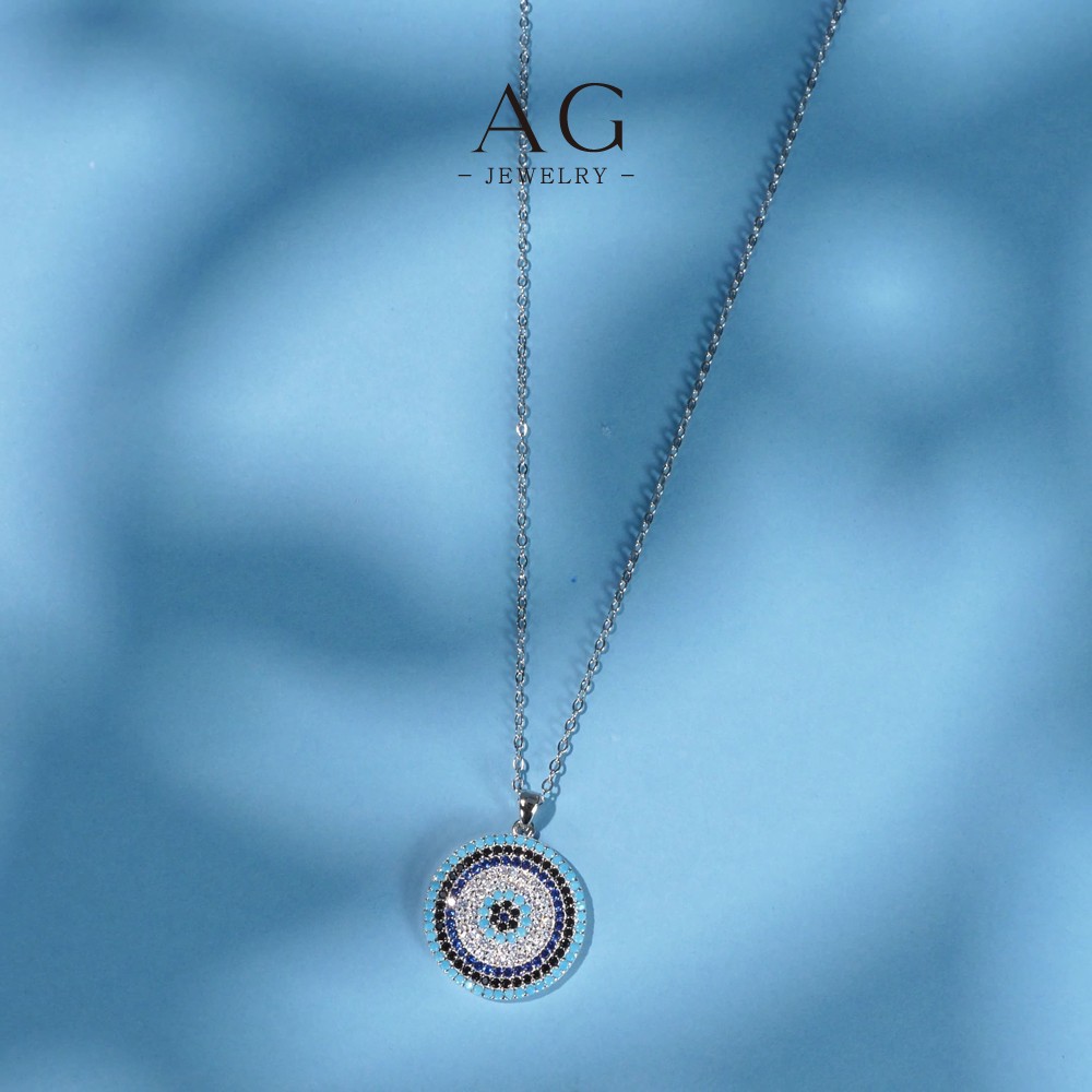 AG Multi Charm Evil Eye Necklace 925 Sterling Silver Bohemian Protection Jewelry AGRHN1368
