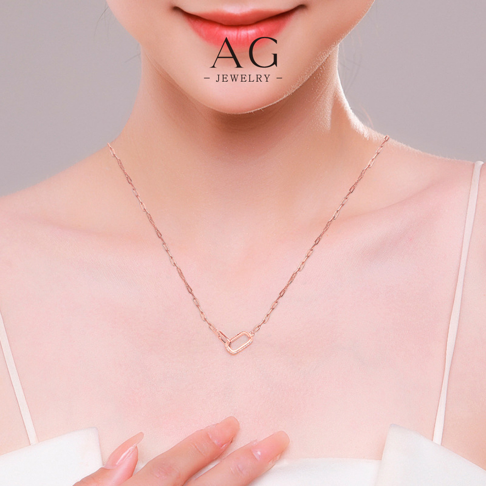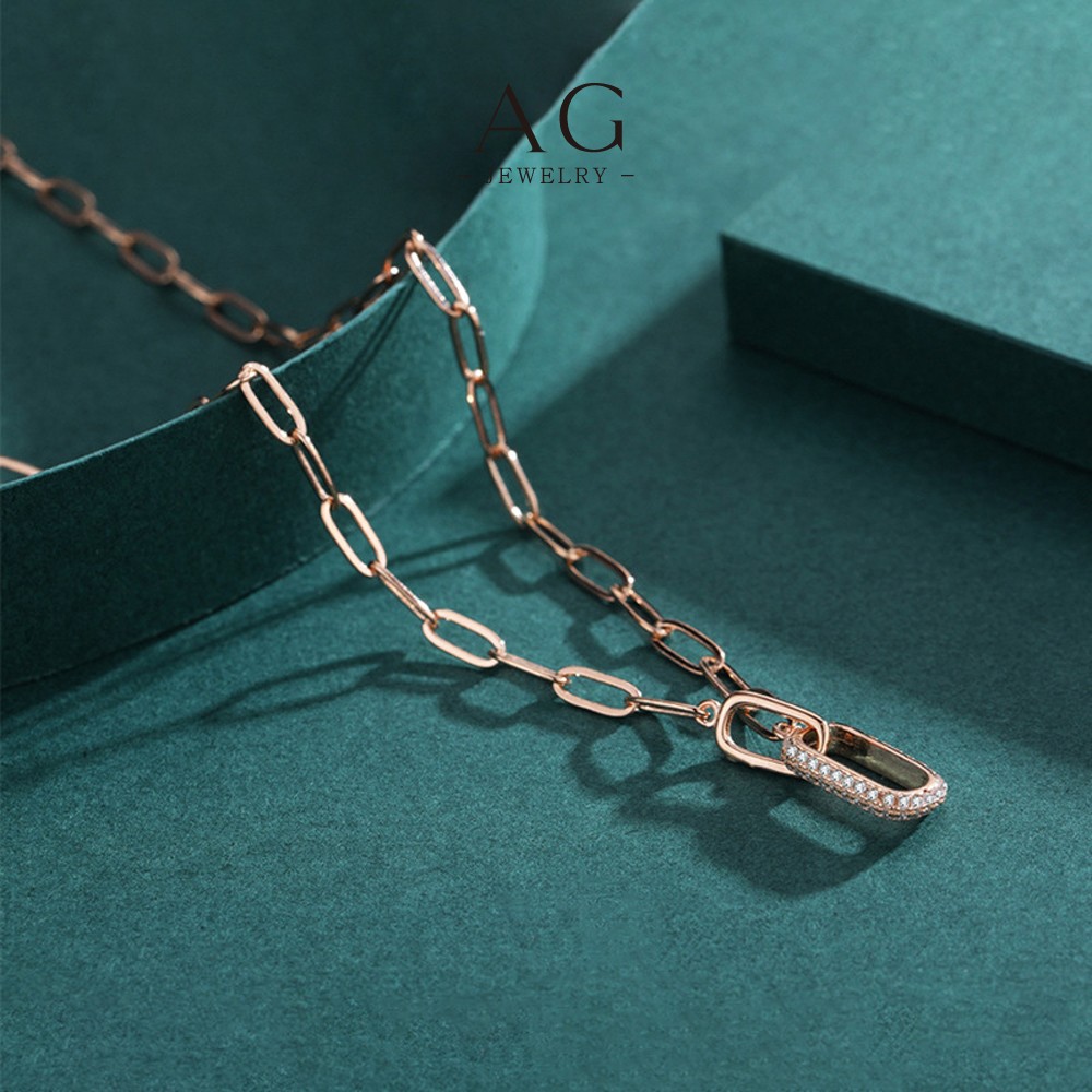 AG Double Oval Hoop Necklace 925 Sterling Silver Modern Geometric Link Jewelry AGRHN1123