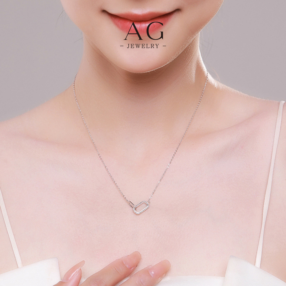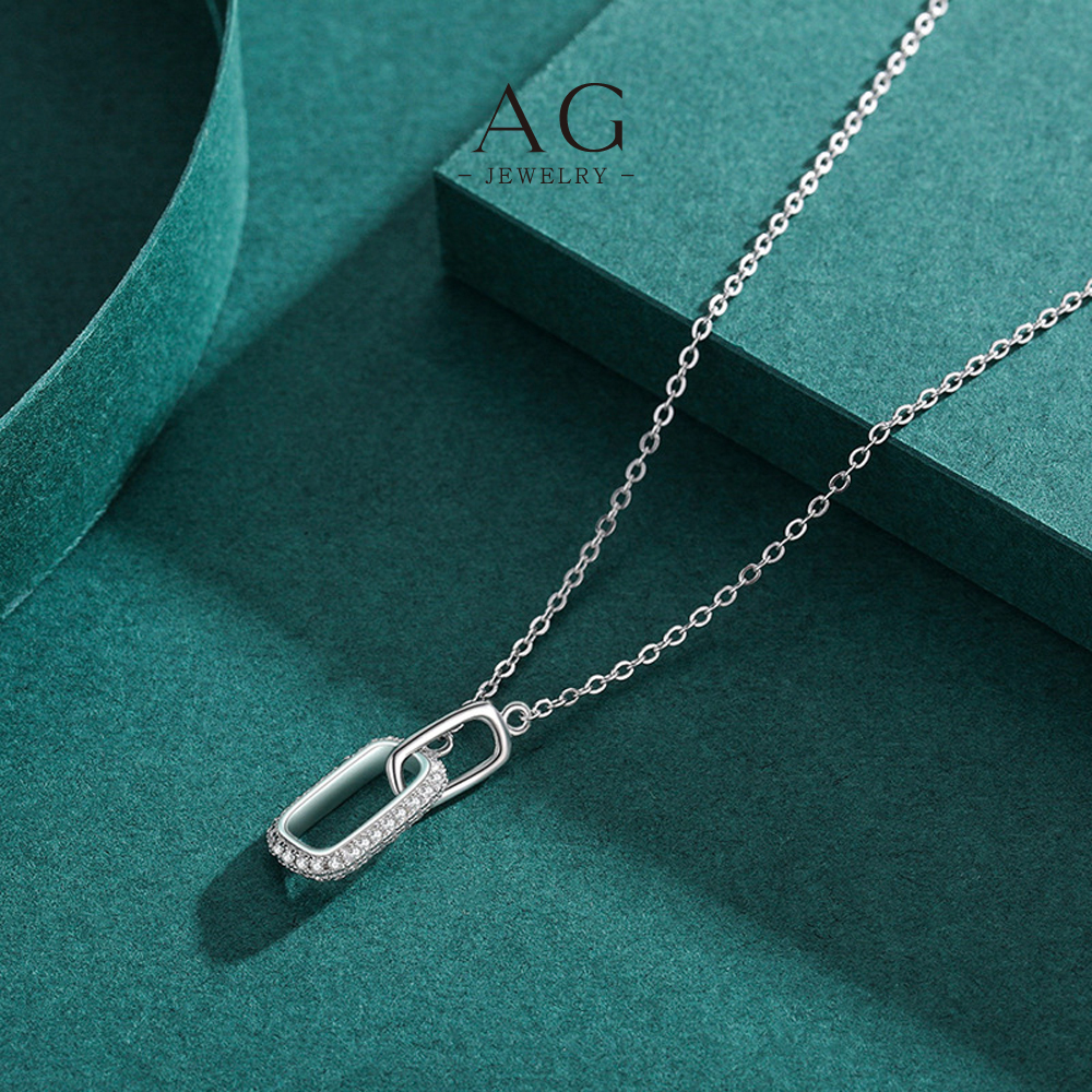 AG Double Oval Hoop Necklace 925 Sterling Silver Modern Geometric Link Jewelry AGRHN1085