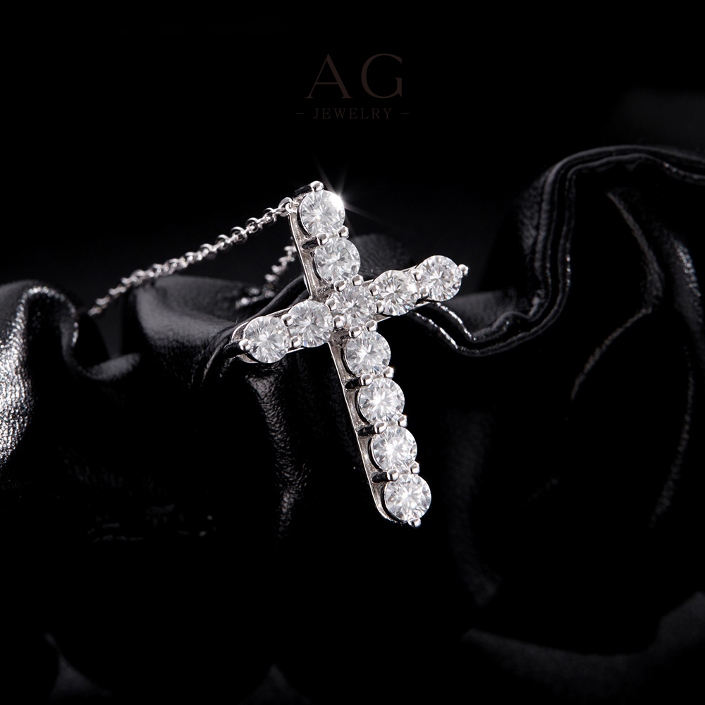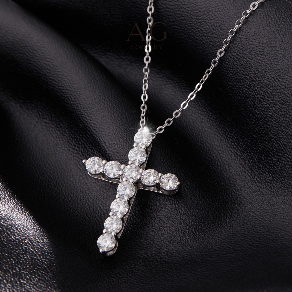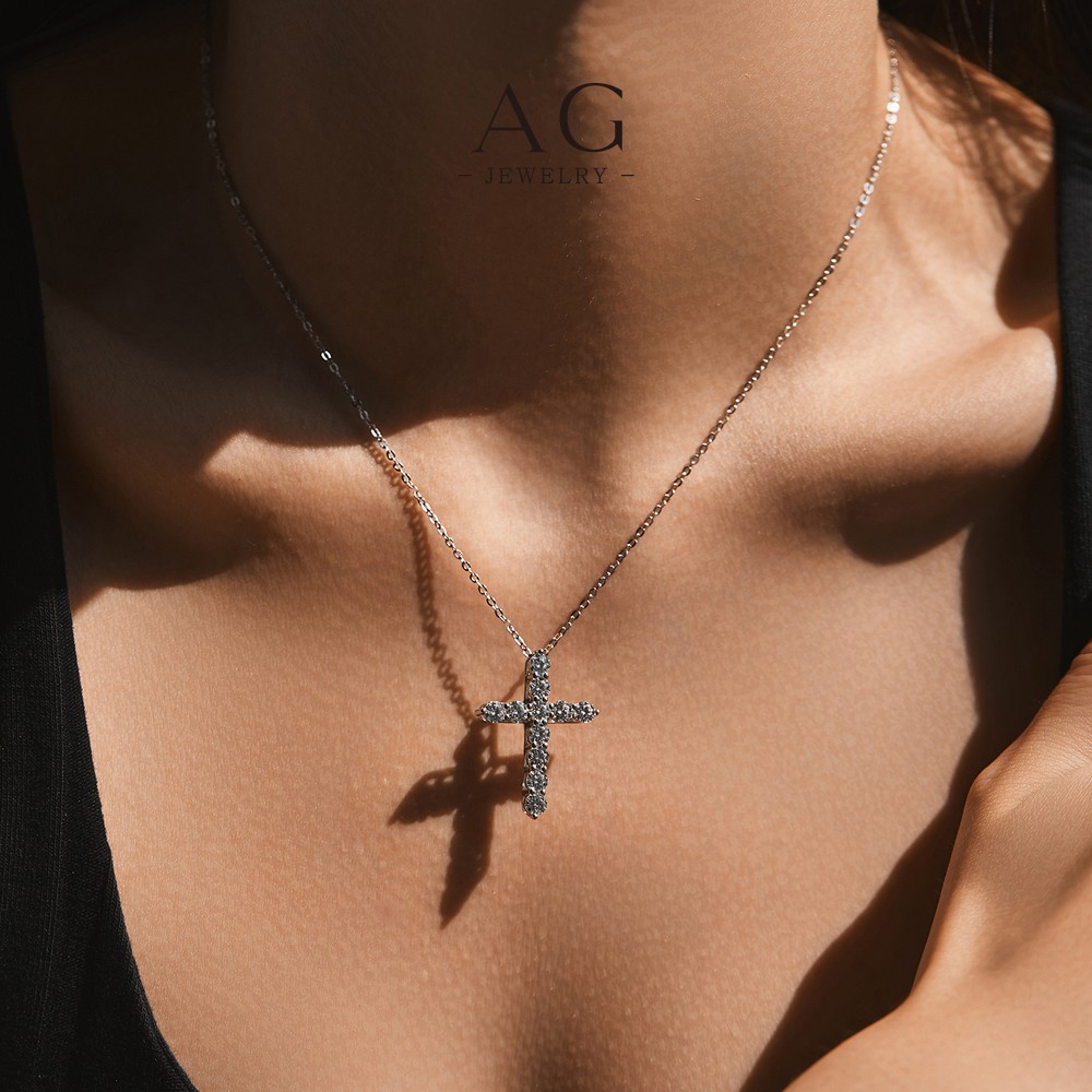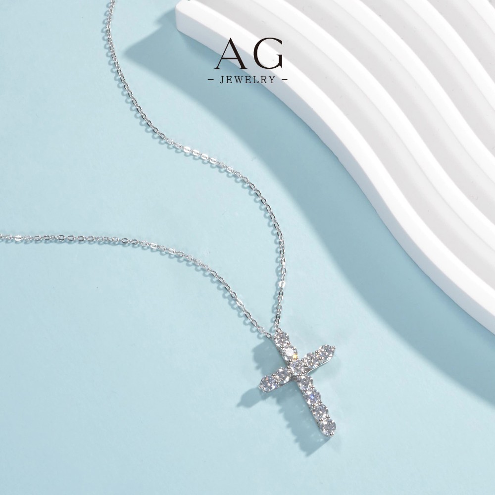AG Cross Zircon Pendant Necklace 925 Sterling Silver Dainty Feminine Jewelry AGMSN0098