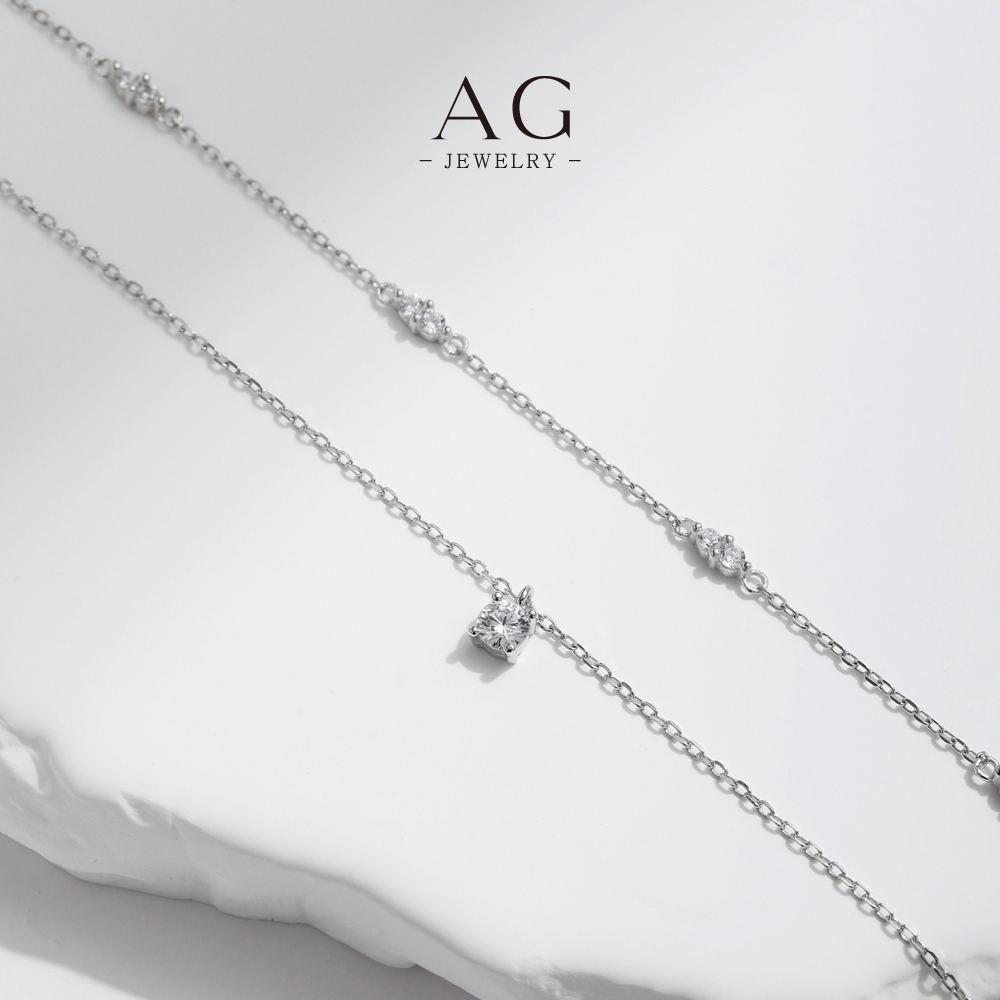 AG Double Layer Zircon Choker Necklace 925 Sterling Silver Stackable Fashion Jewelry AGMSN0030
