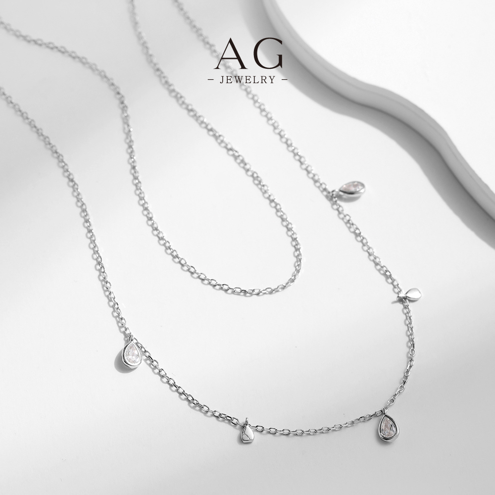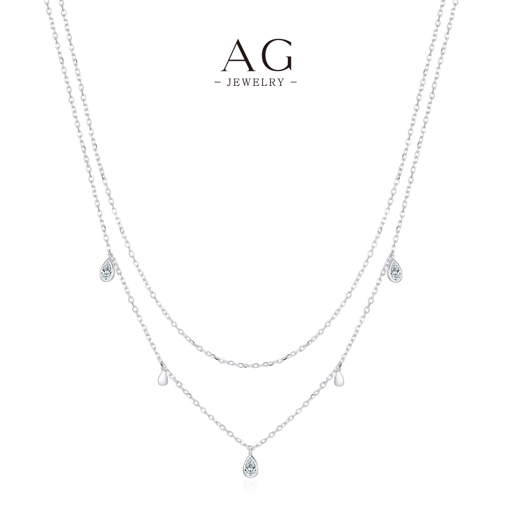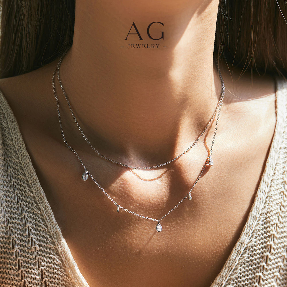 AG Double Layer Teardrop Zircon Necklace 925 Silver Statement Jewelry AGMSN0011