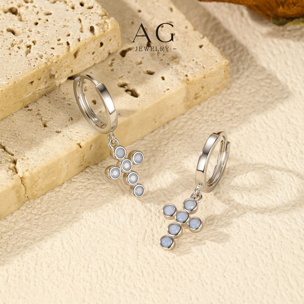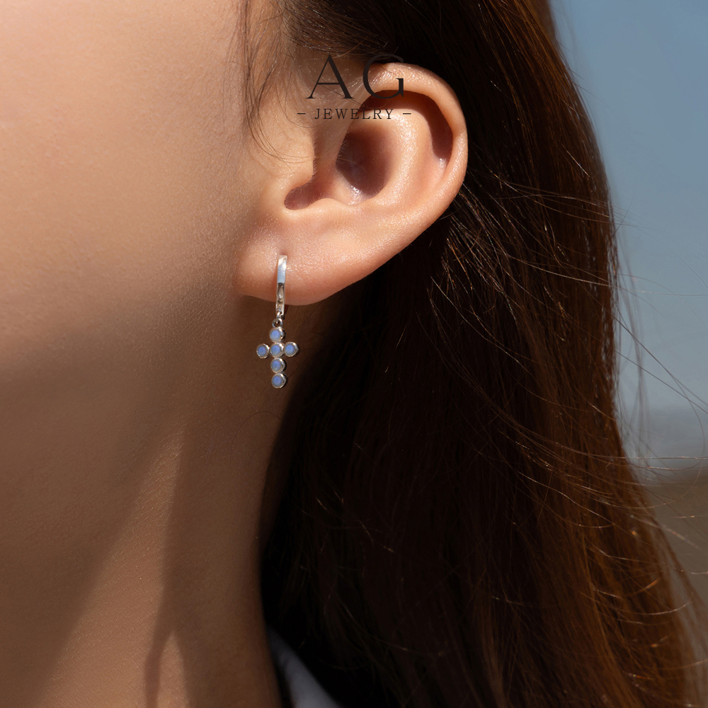 AG Cross Opal Earrings 925 Sterling Silver Iridescent Spiritual Jewelry Gift AGRHE1918