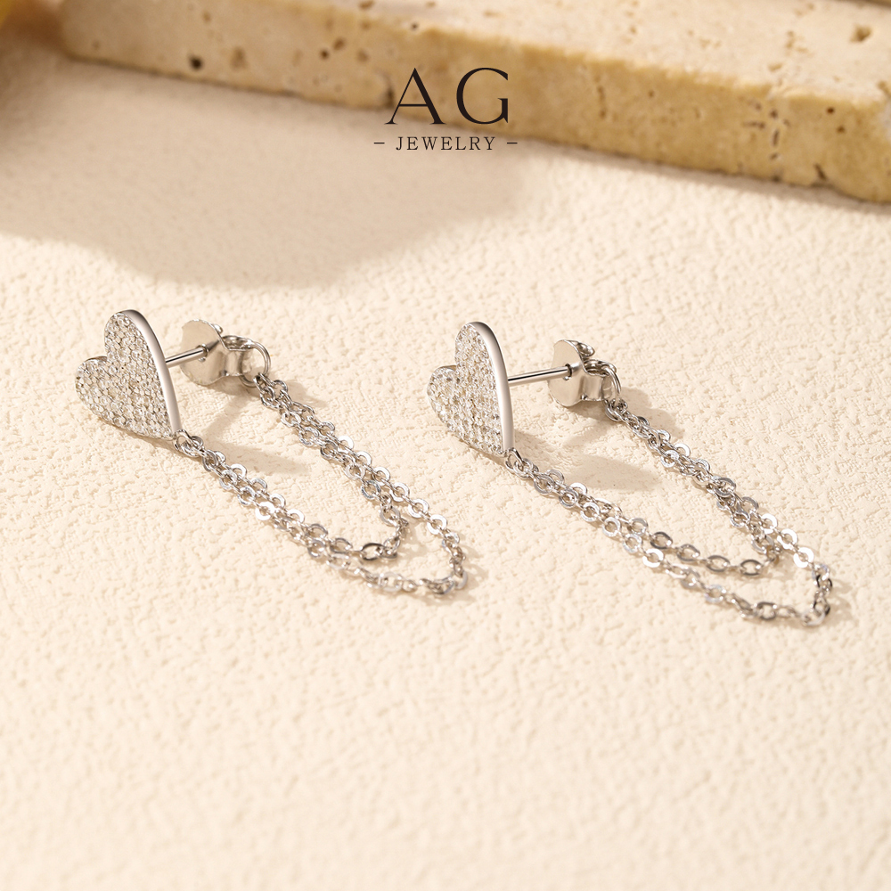 AG Heart Tassel Earrings 925 Sterling Silver Romantic Motion Drop Jewelry AGRHE1893