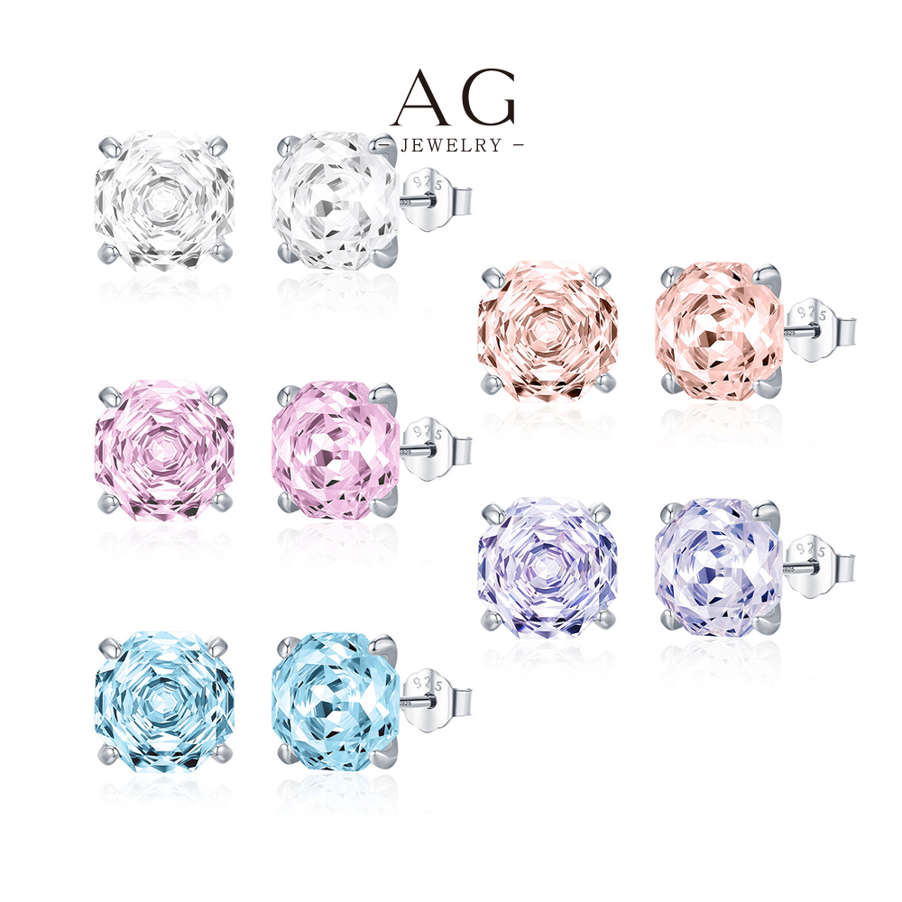 AG Multicolor Birthstone Zircon Stud Earrings 925 Sterling Silver Zodiac Jewelry Collection AGRHE1878