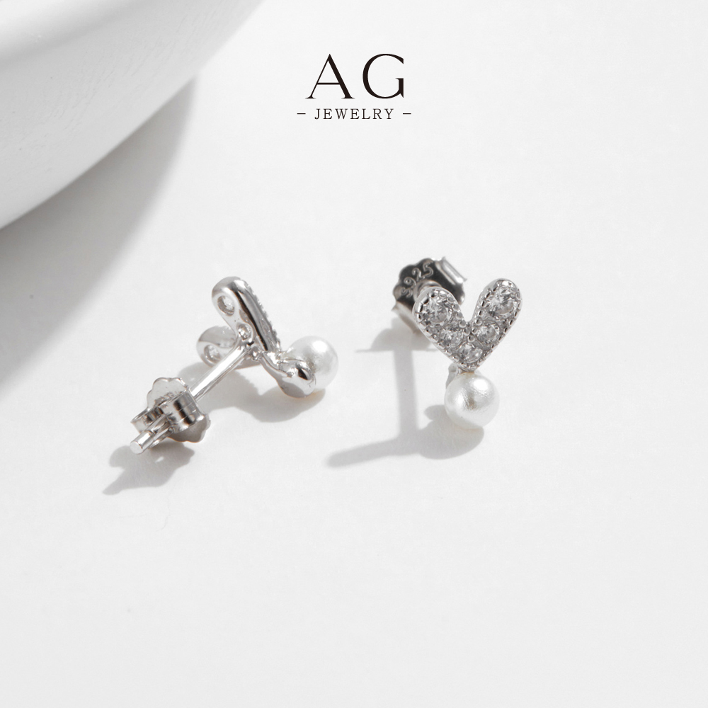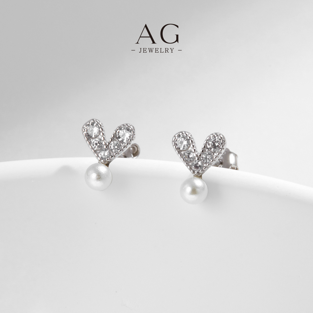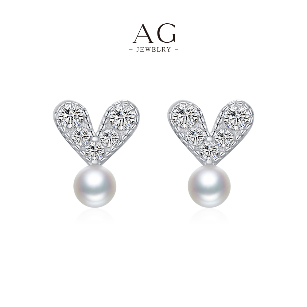 AG Heart and Pearl Stud Earrings 925 Sterling Silver Romantic Classic Jewelry AGRHE1859