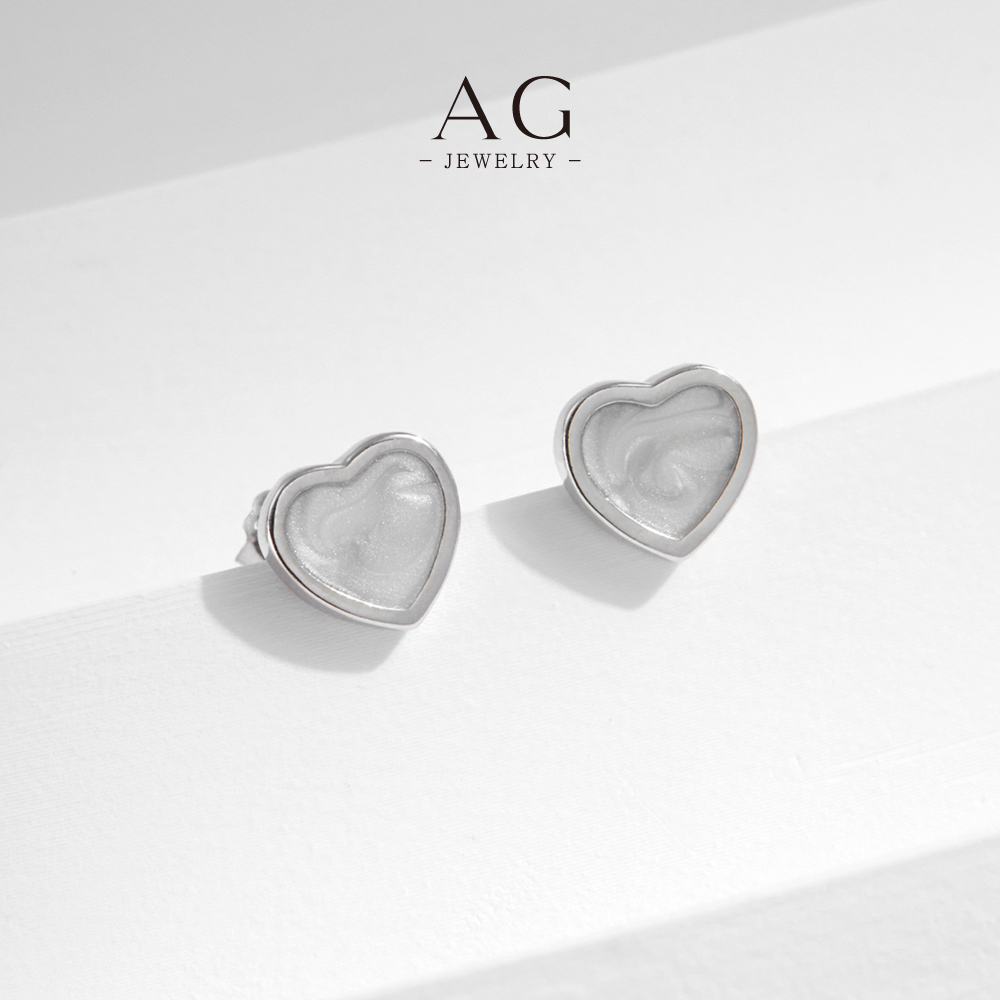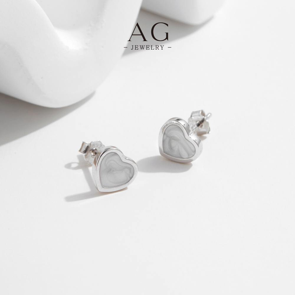 AG Heart Shaped Mother of Pearl Stud Earrings 925 Sterling Silver AGRHE1849