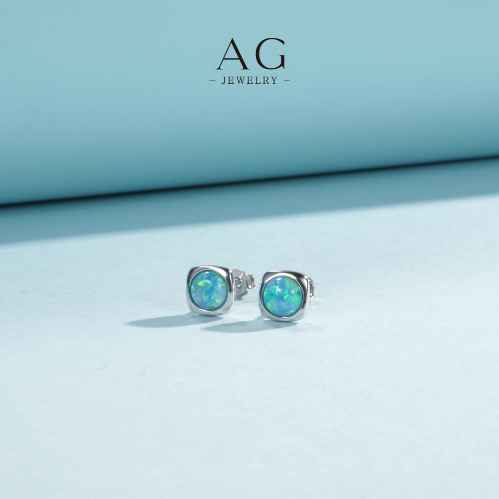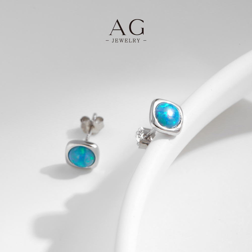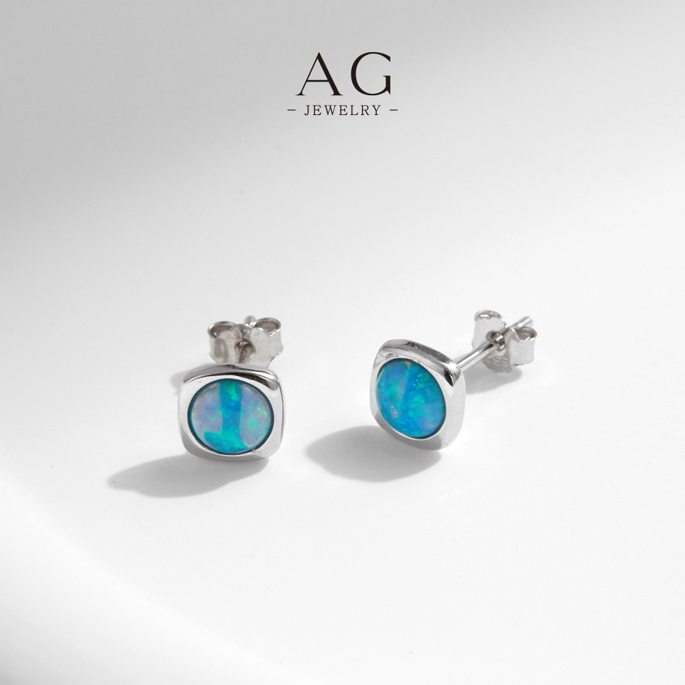 AG Opal Stud Earrings 925 Sterling Silver Iridescent Minimalist Gemstone Jewelry AGRHE1822