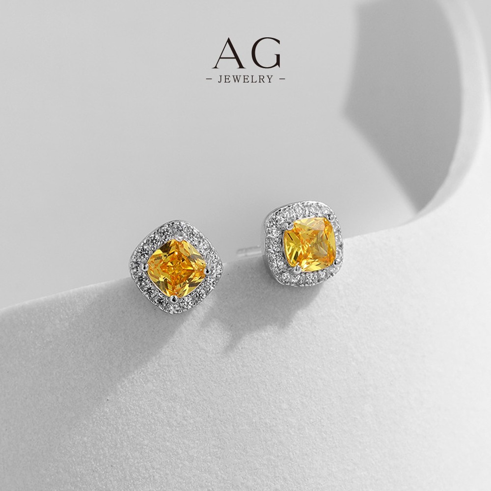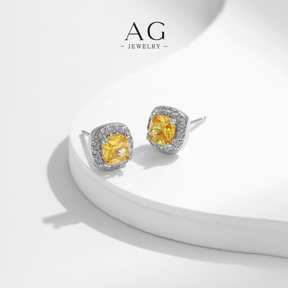 AG Champagne Zircon Stud Earrings 925 Sterling Silver Effortless Elegance Jewelry AGRHE1533