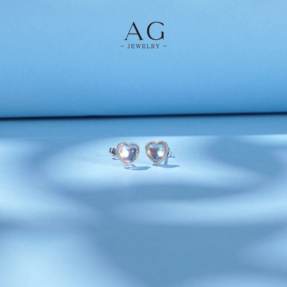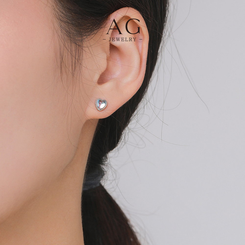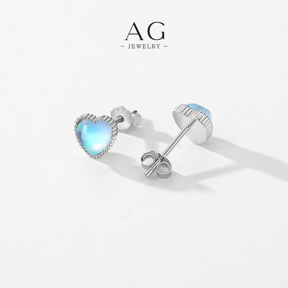 AG Heart Moonstone Stud Earrings 925 Sterling Silver Mystical Love Amulet Jewelry AGRHE1302