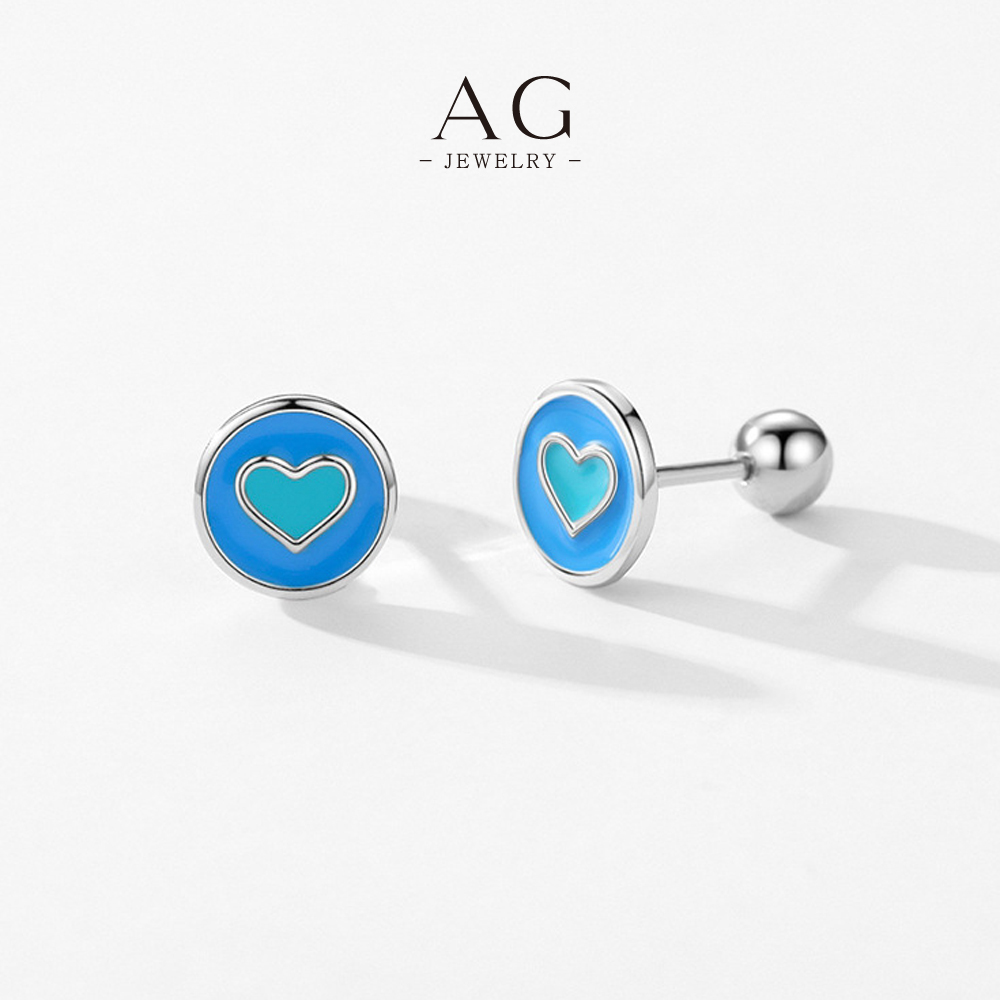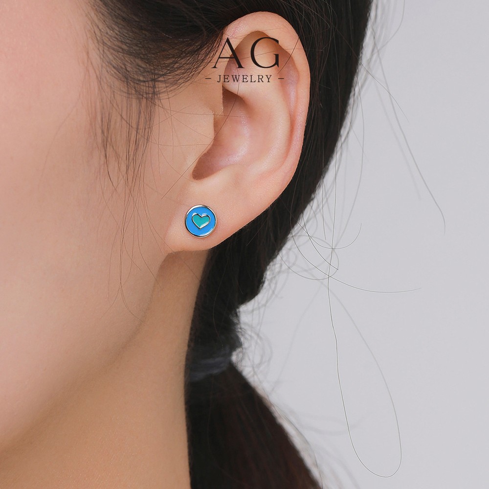 AG Heart Enamel Stud Earrings 925 Silver Plated Glass Art Effect Jewelry AGRHE1300