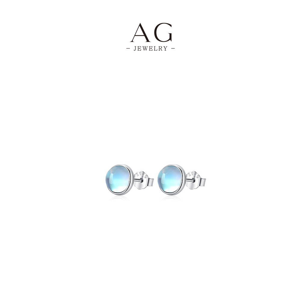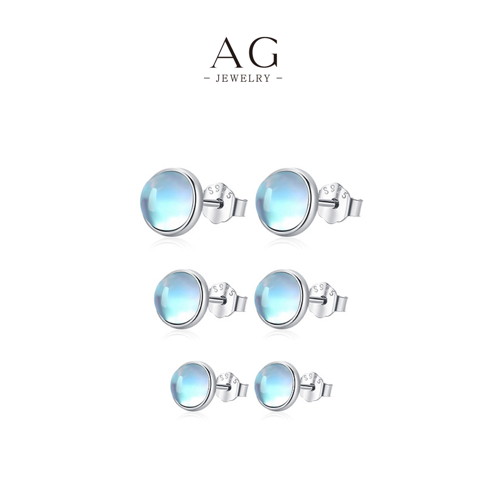 AG Moonstone Stud Earrings 925 Sterling Silver Three Sizes Celestial Jewelry Collection AGRHE1164
