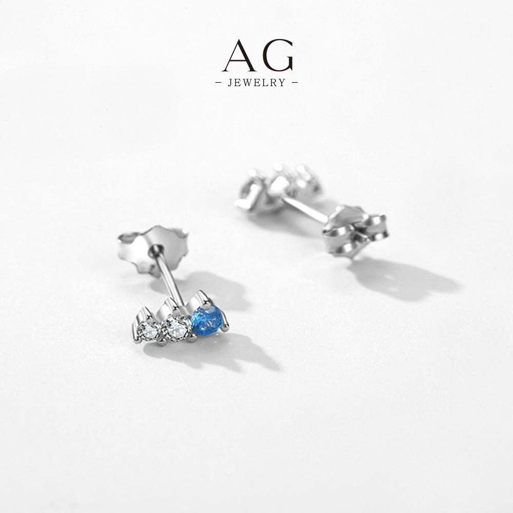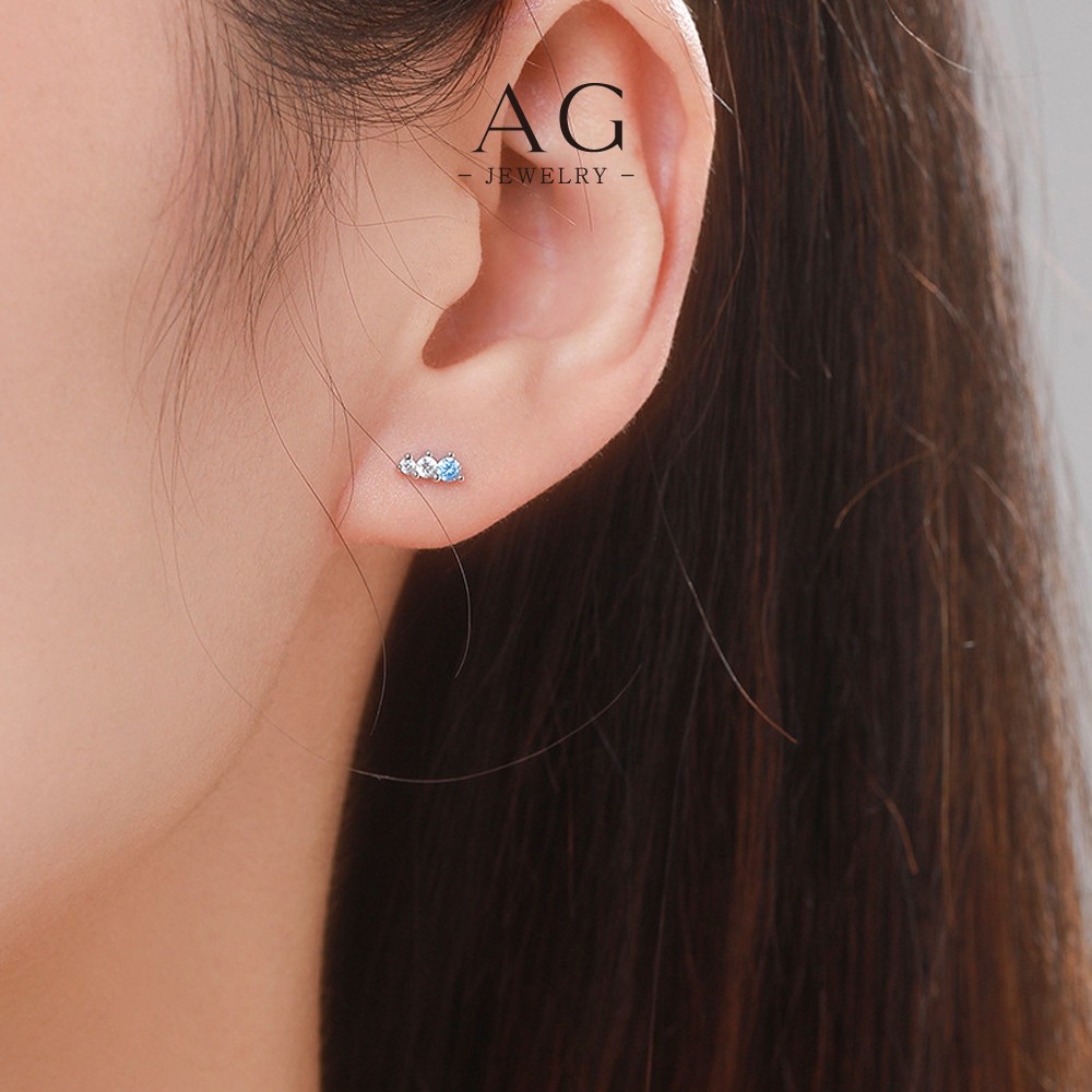AG Three Stone Zircon Stud Earrings 925 Sterling Silver Trinity Sparkle Ear Jewelry AGRHS1263