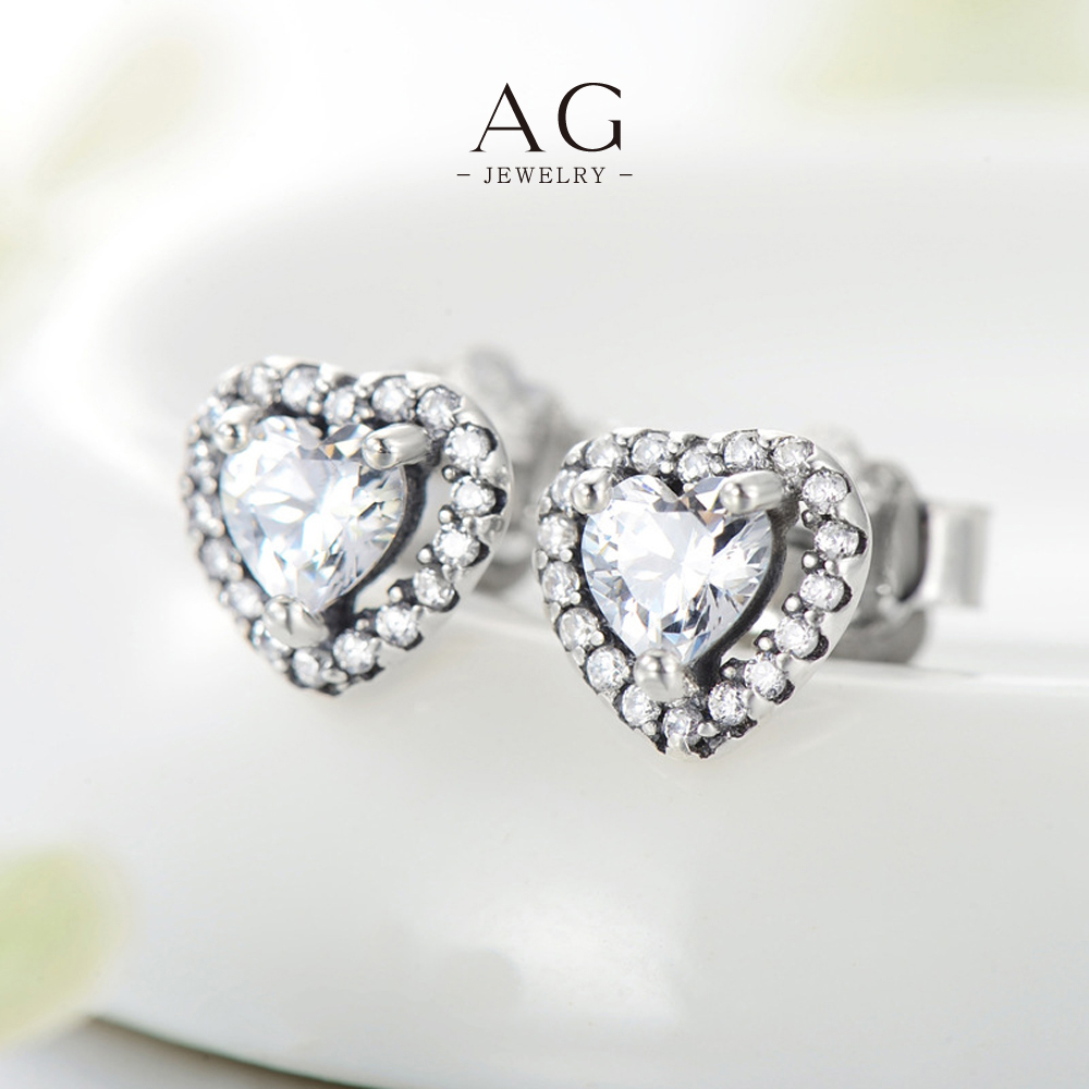 AG Heart Shaped Zircon Stud Earrings 925 Sterling Silver Romantic Love Jewelry AGRHE617