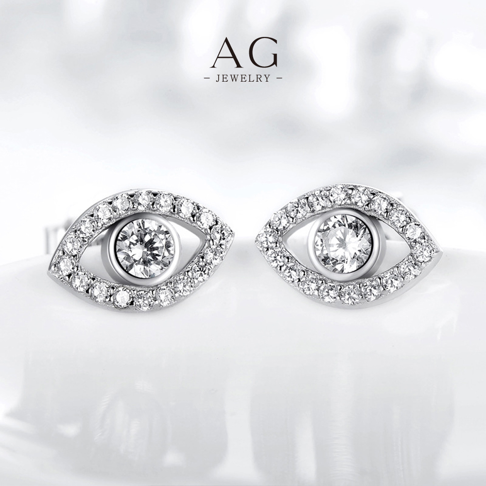 AG Evil Eye Zircon Stud Earrings 925 Sterling Silver Protective Symbol Jewelry AGRHE558