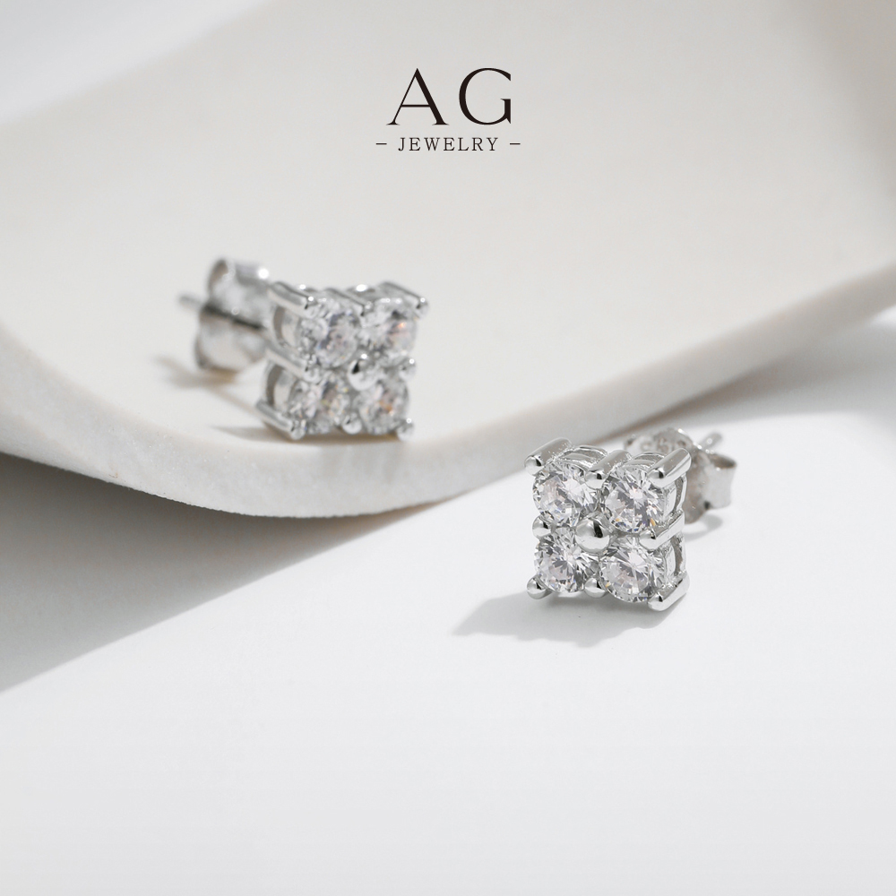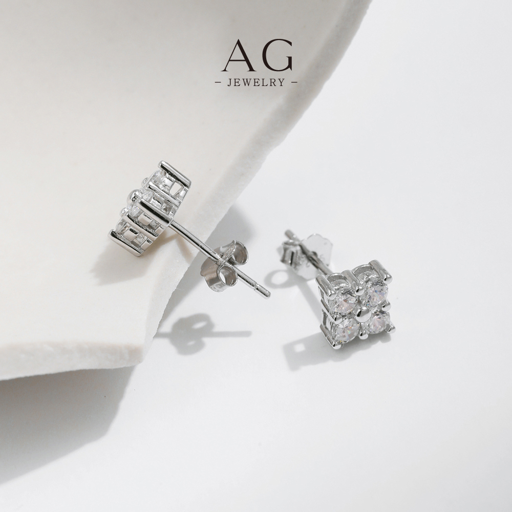 AG Diamond Cut Zircon Stud Earrings 925 Sterling Silver Angular Light Reflection Jewelry AGMSE0024