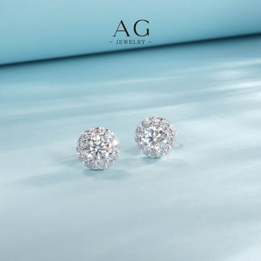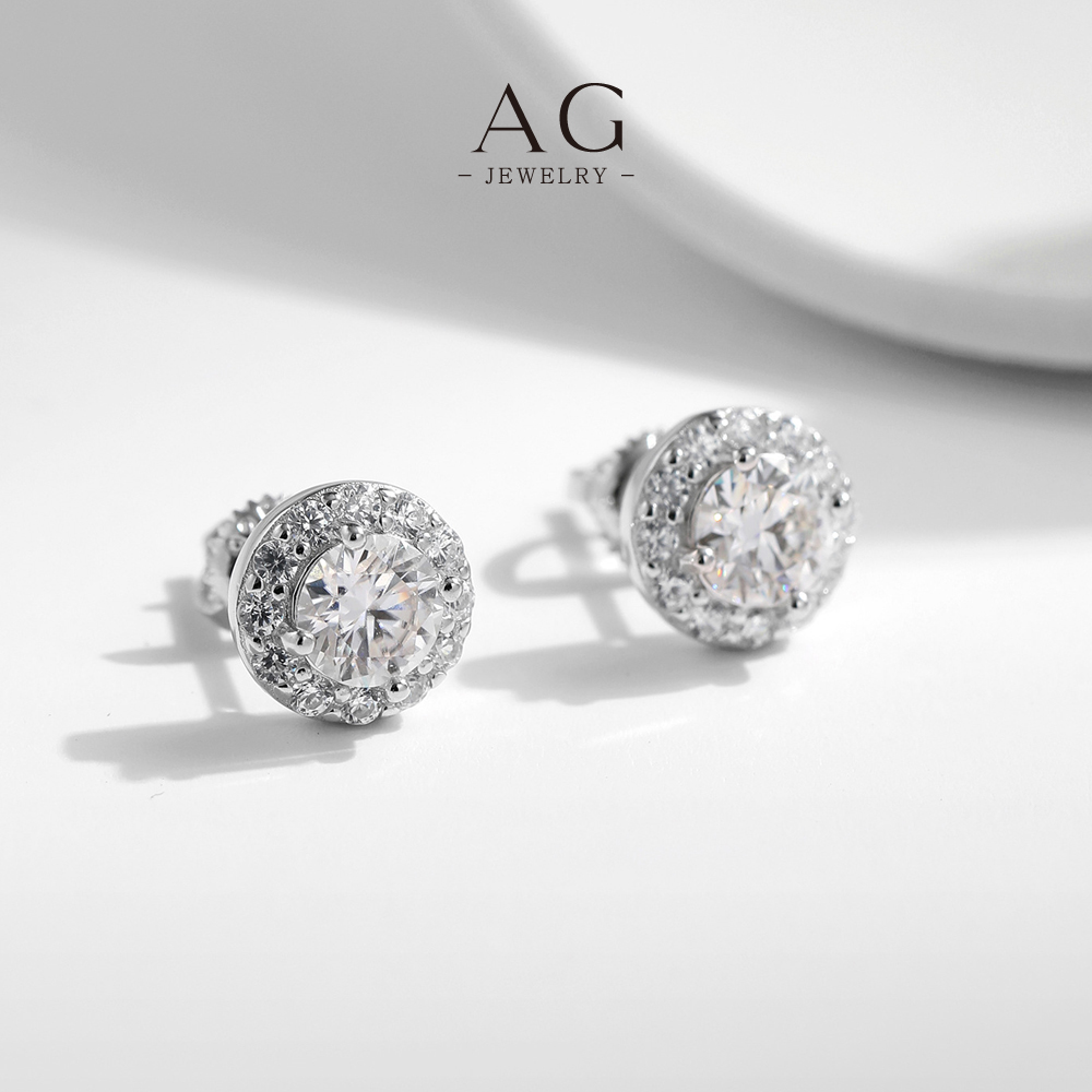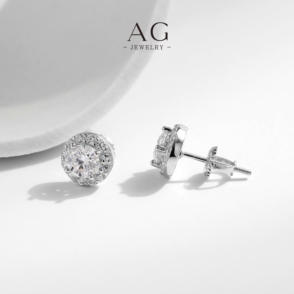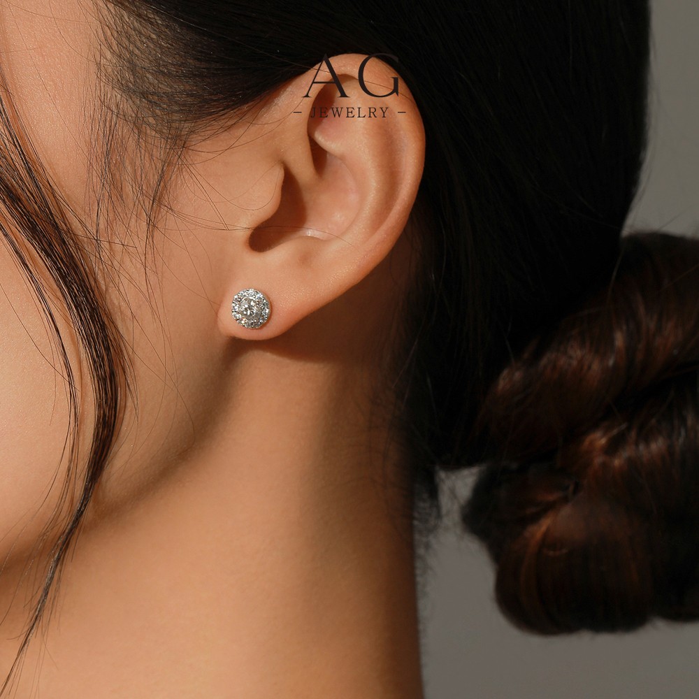 AG Round Zircon Stud Earrings 925 Sterling Silver Eternal Circle Sparkle Jewelry AGMSE0004