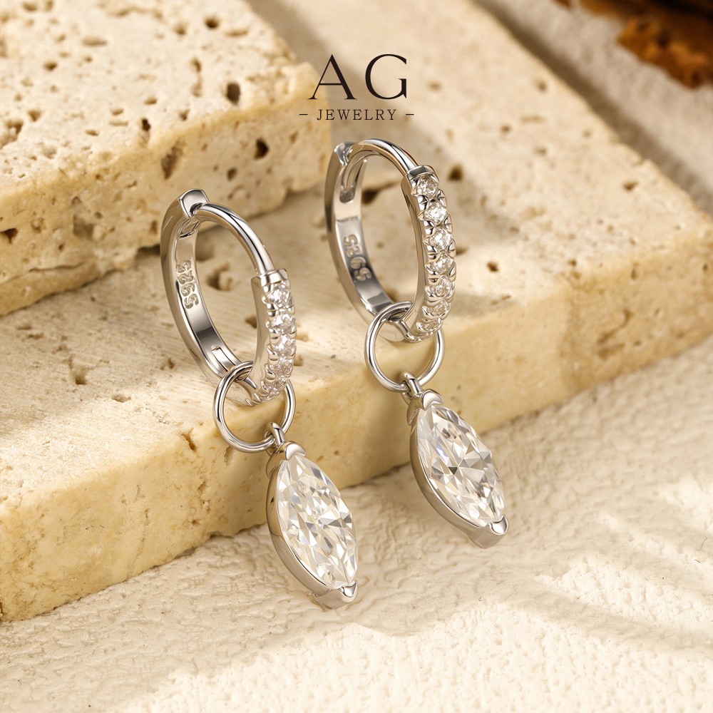 AG Baguette Drop Earrings 925 Sterling Silver Linear Modernist Ear Jewelry AGMSE0105