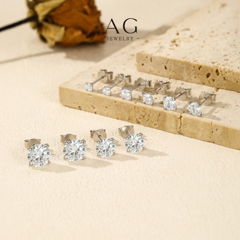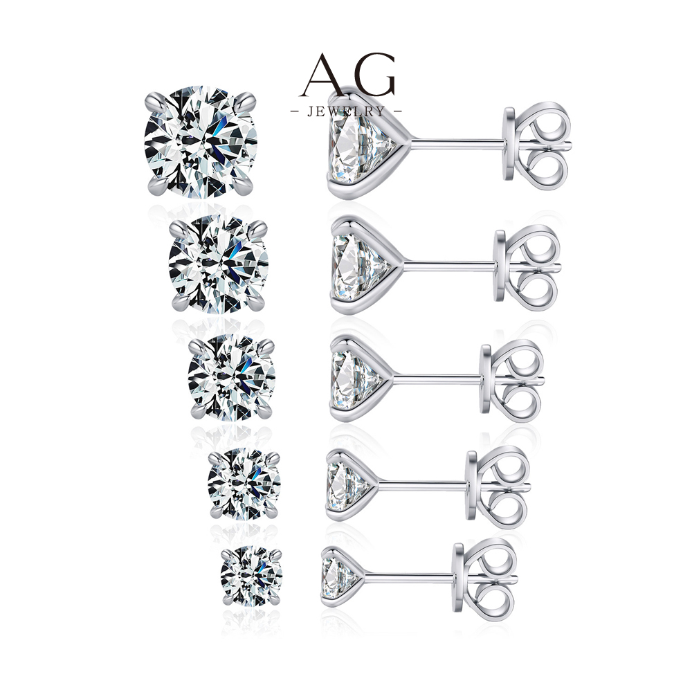 AG Classic Zircon Stud Earrings 925 Sterling Silver Timeless Fine Jewelry for Her AGMSE0100