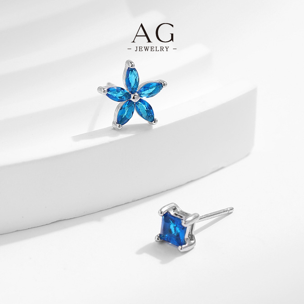 AG Mismatched Navy Earrings 925 Sterling Silver Geometric and Floral Duo AGE8018