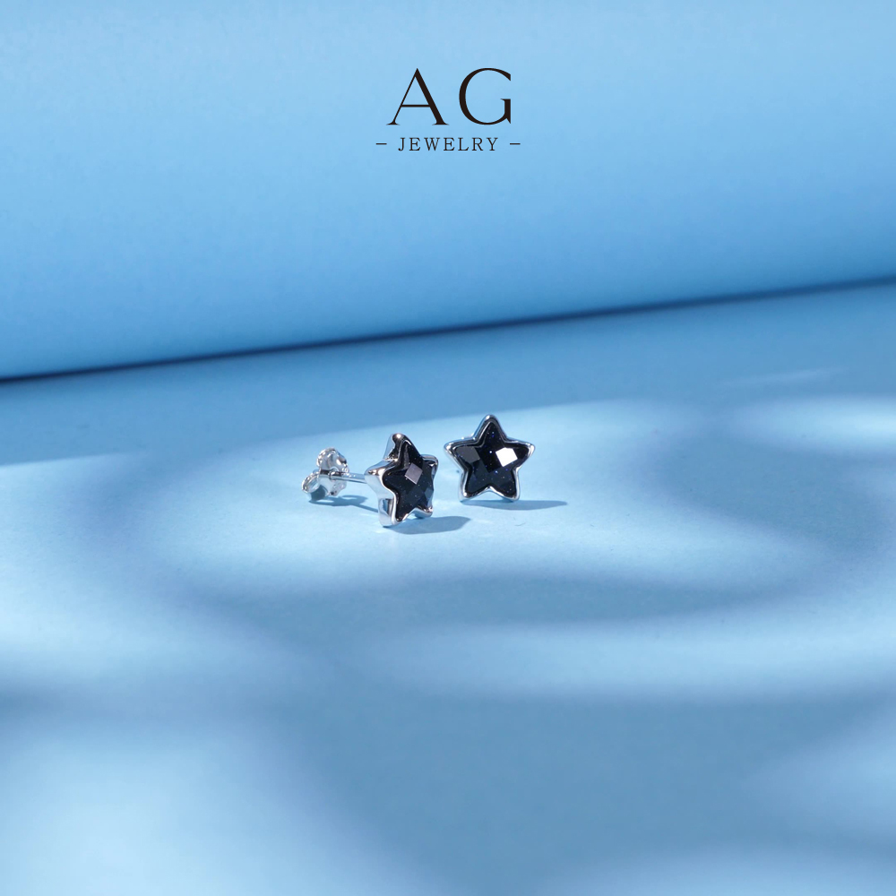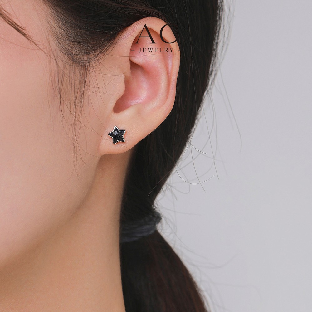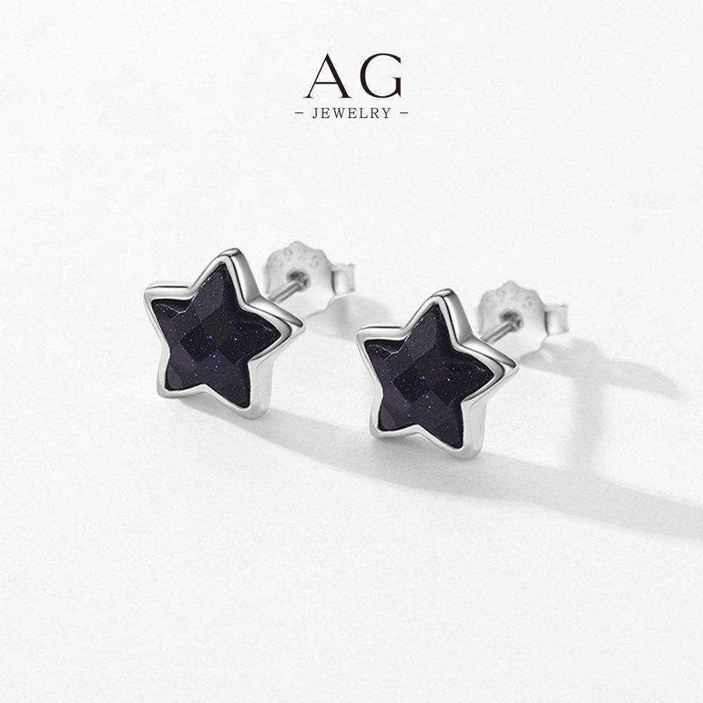 AG Black Star Glitter Zircon Stud Earrings 925 Sterling Silver AGE471