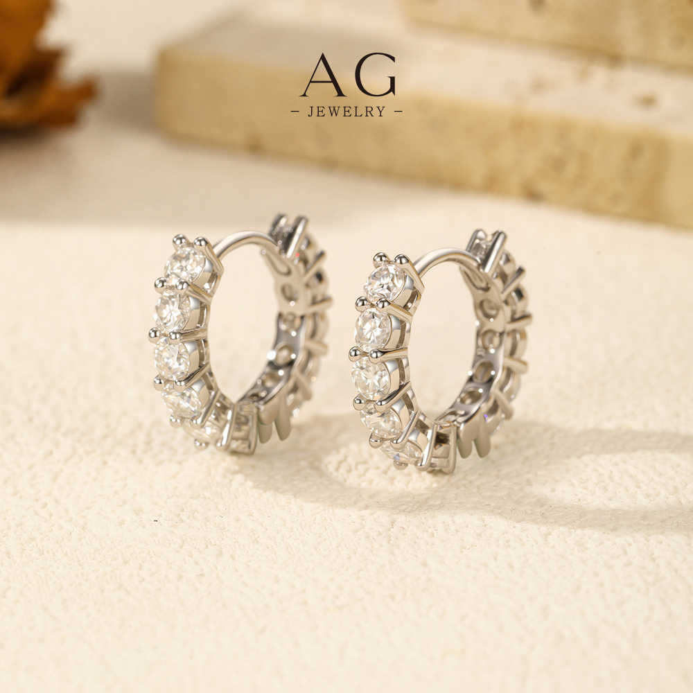 AG Zircon Clip Earrings 925 Silver Plated Non-Pierced Glamour Jewelry AGMSE0108