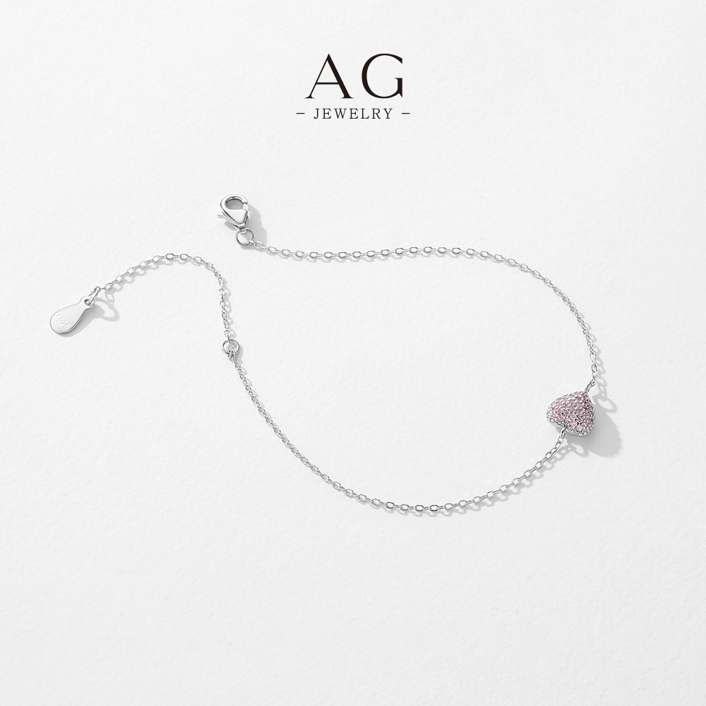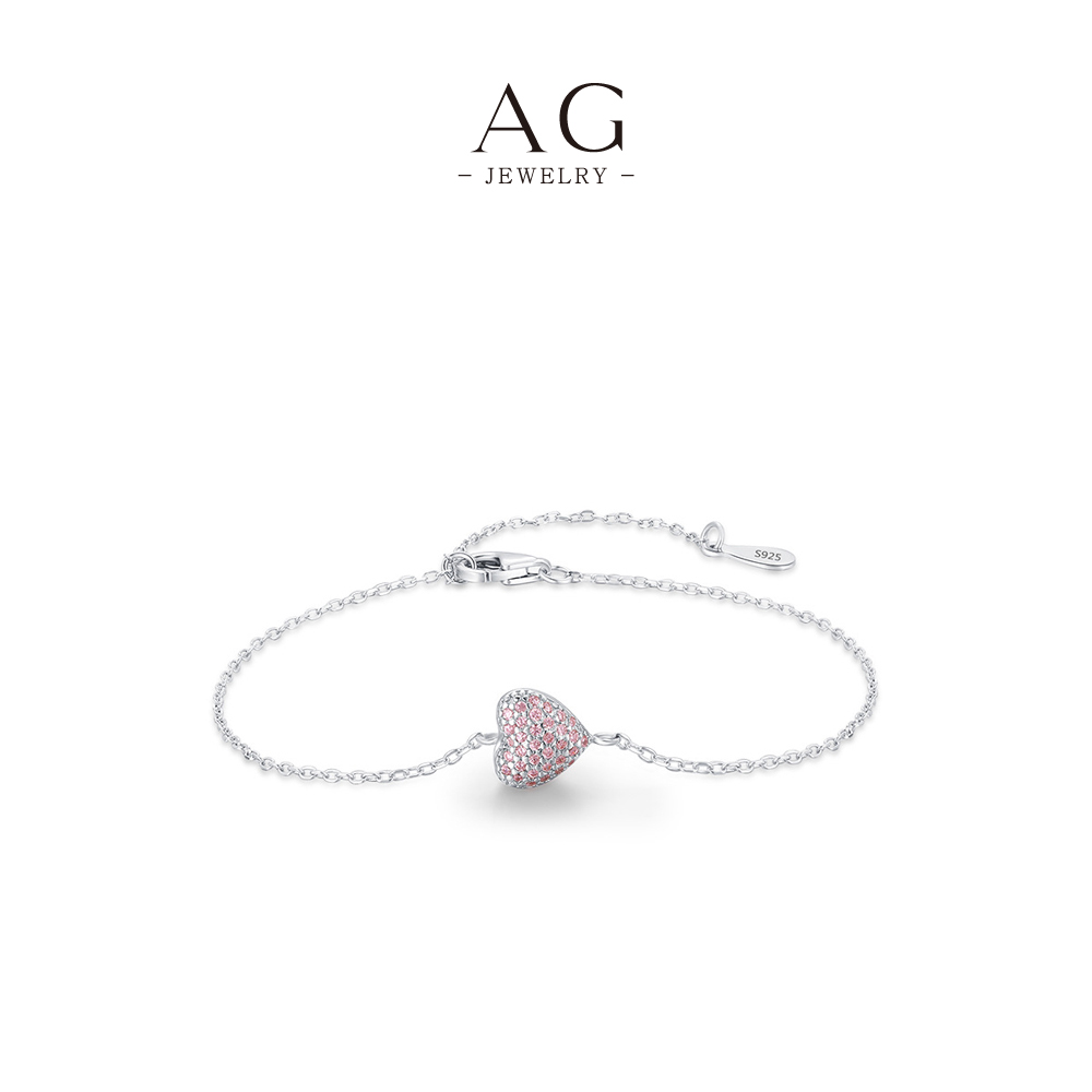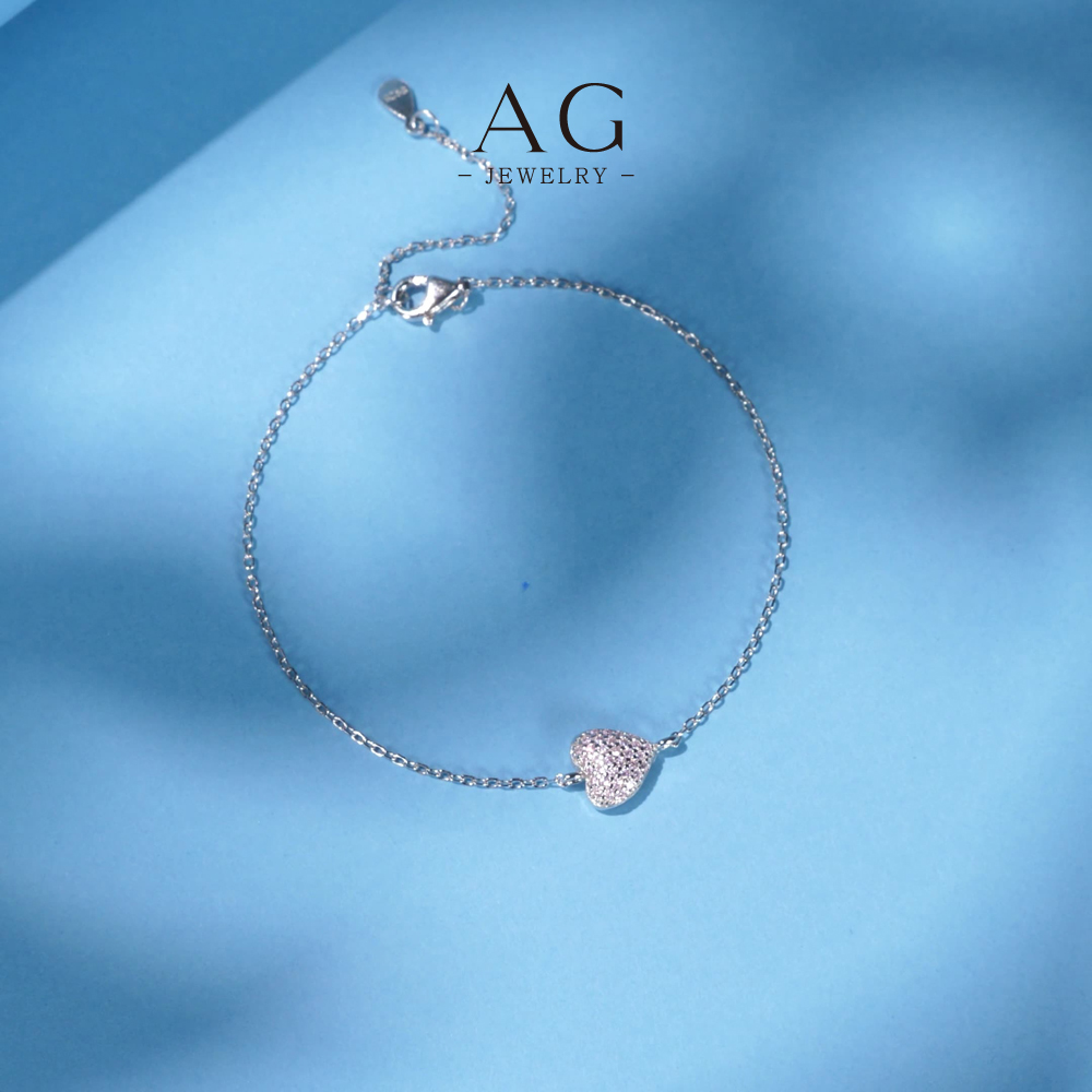 AG Pavé Heart Zircon Bracelet 925 Sterling Silver Anniversary Gift for Her AGRHB1364