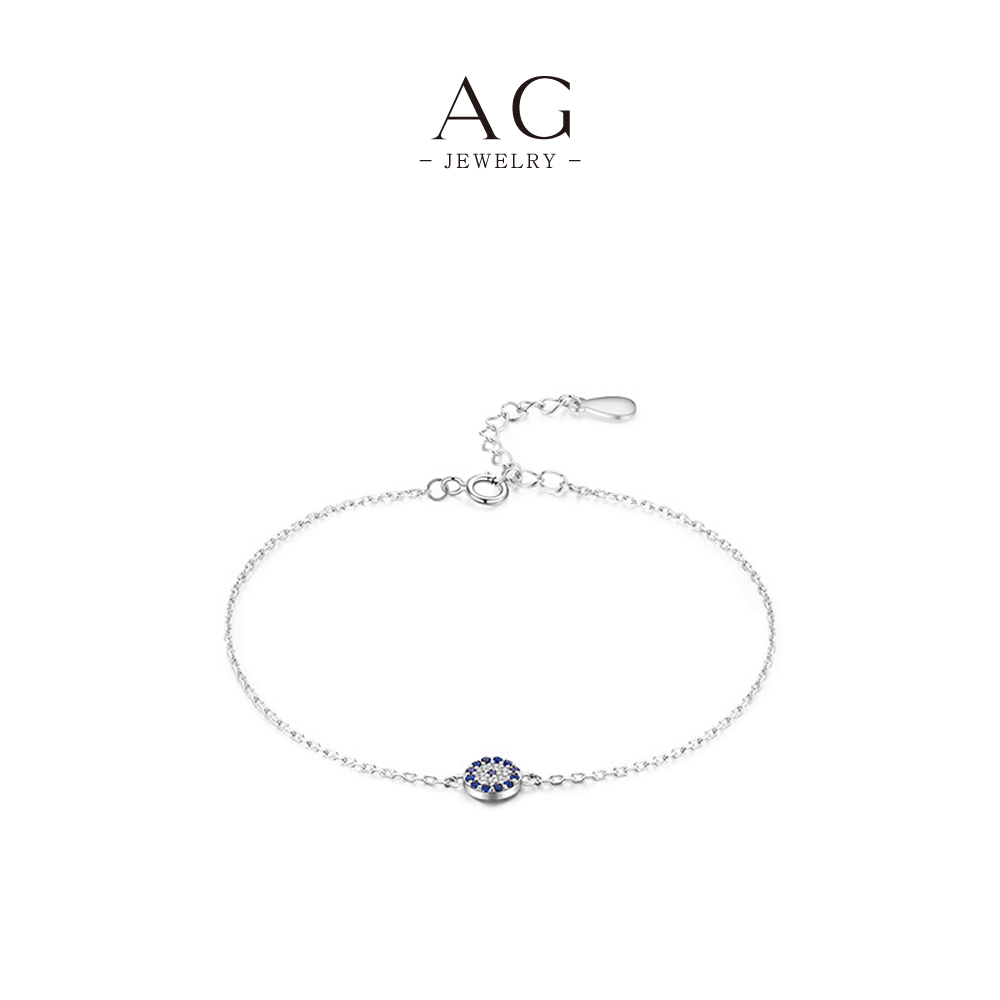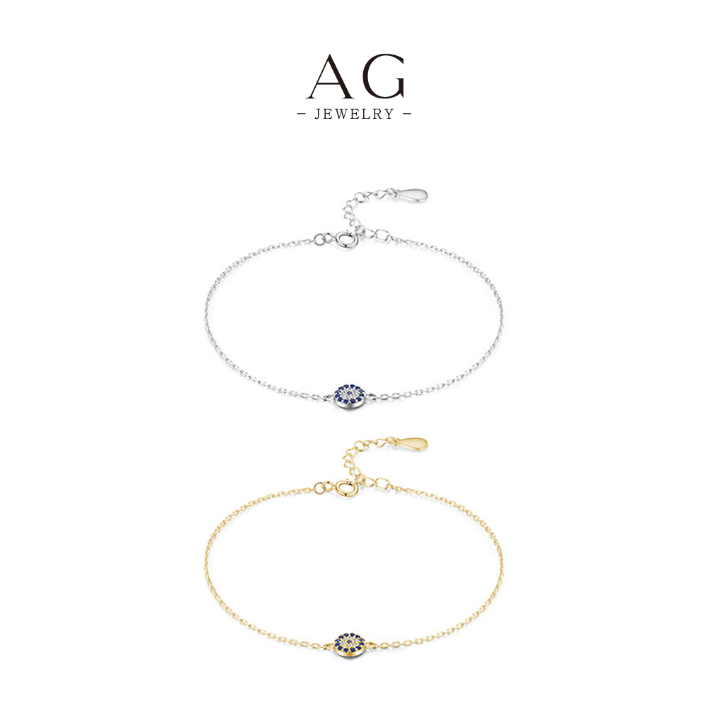 AG Blue Evil Eye Bracelet 925 Silver Stackable Dainty Wish Bracelet for Women AGRHB756