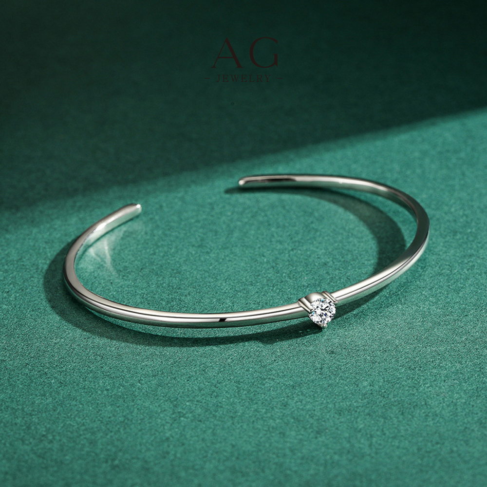 AG Zircon Bangle 925 Sterling Silver Crystal Halo Statement Jewelry AGRHB719