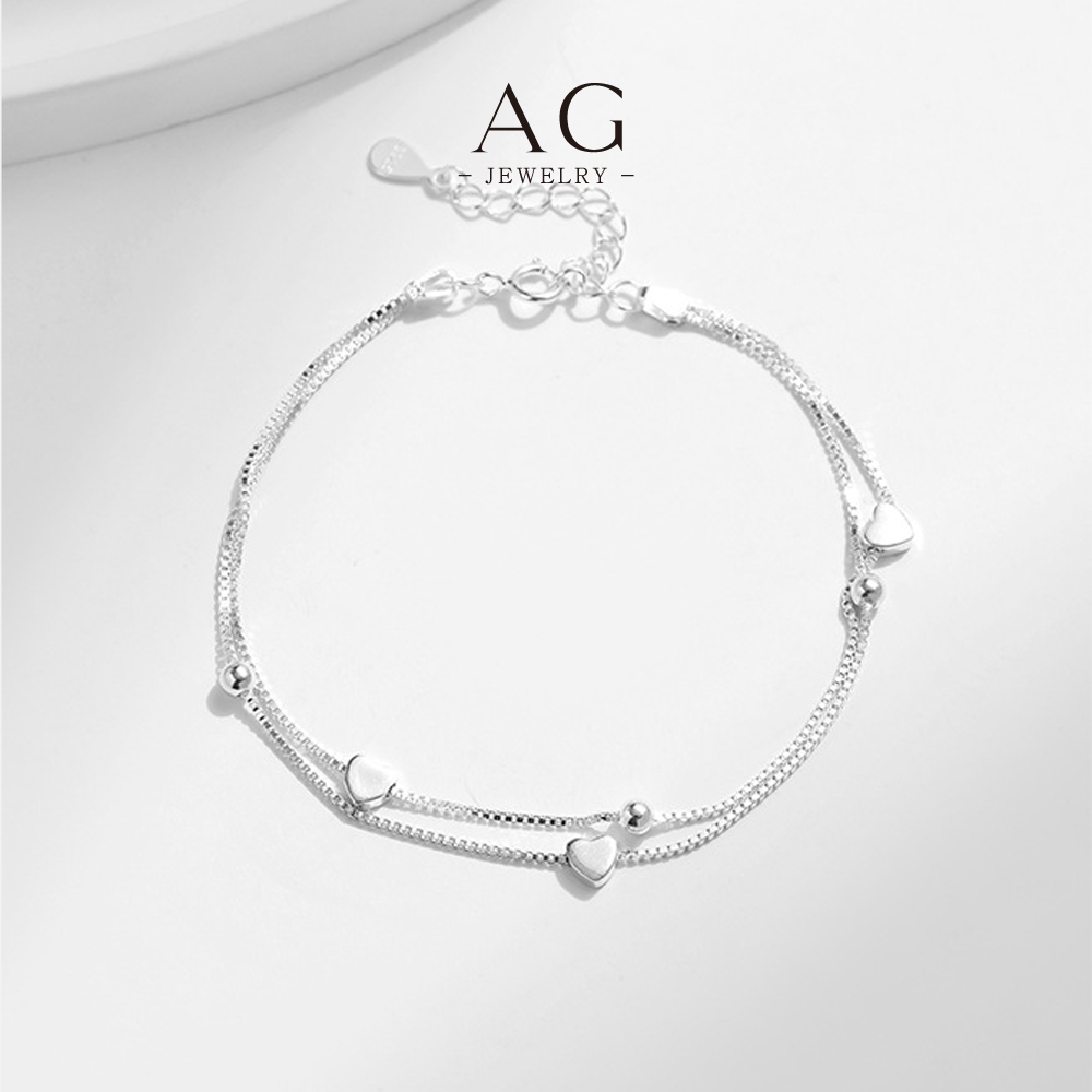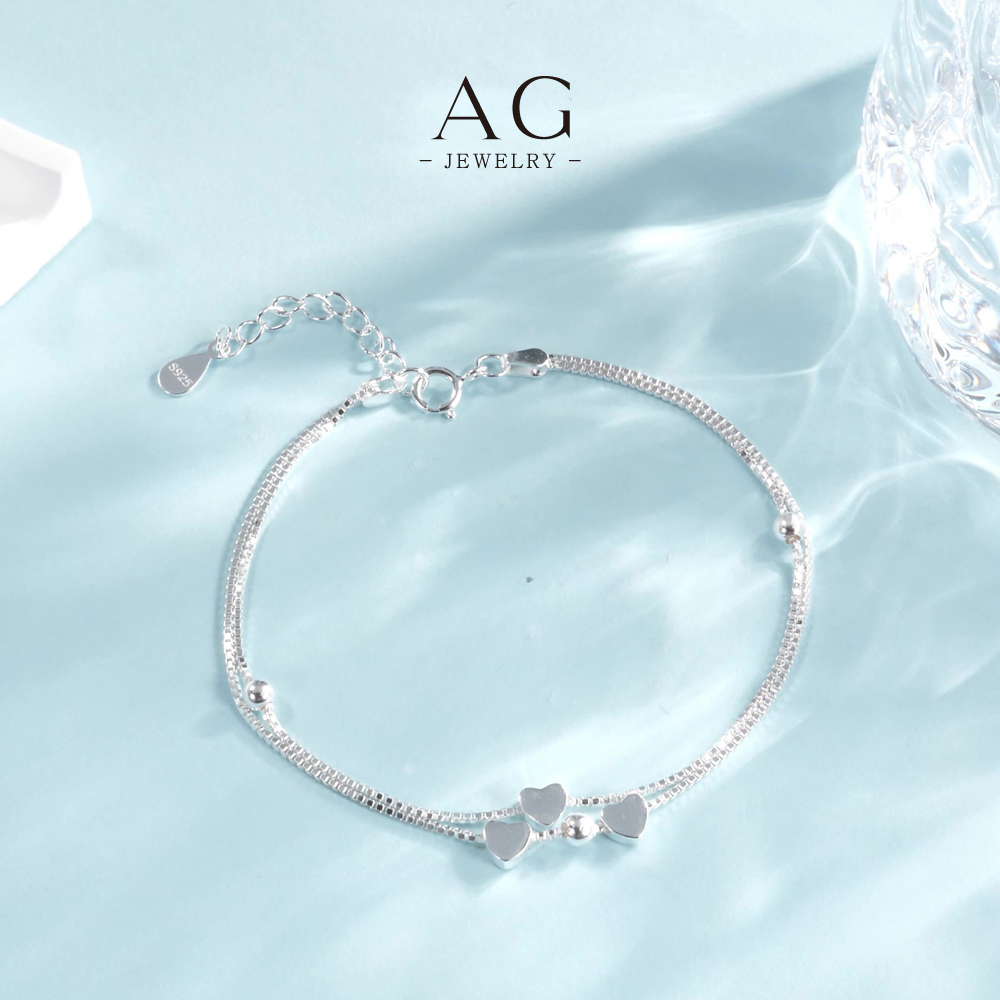 AG Three Heart Link Bracelet 925 Sterling Silver Eternal Love Symbol Jewelry AGS3197