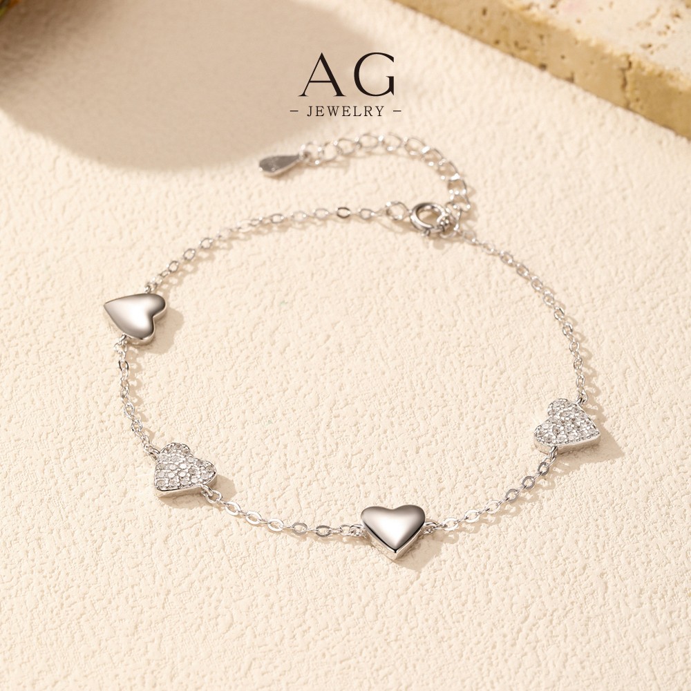 AG Heart Link Bracelet 925 Sterling Silver Romantic Token Jewelry AGRHB1872