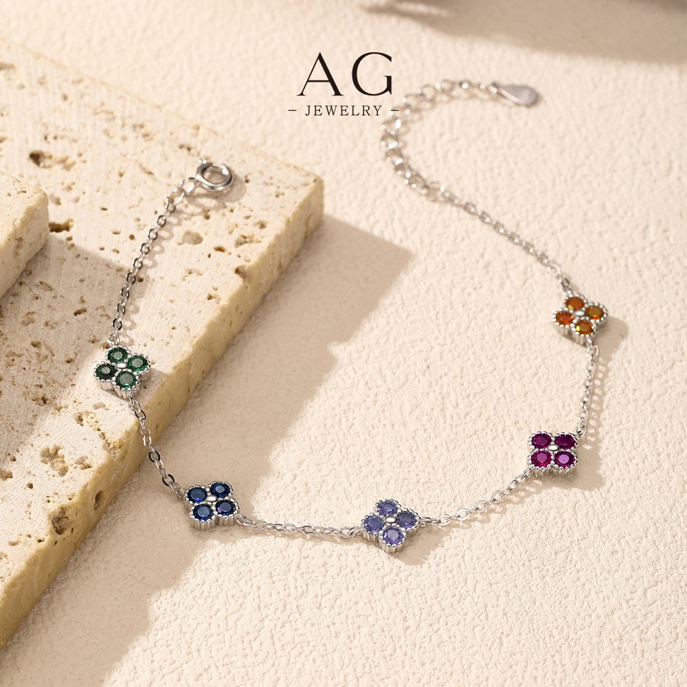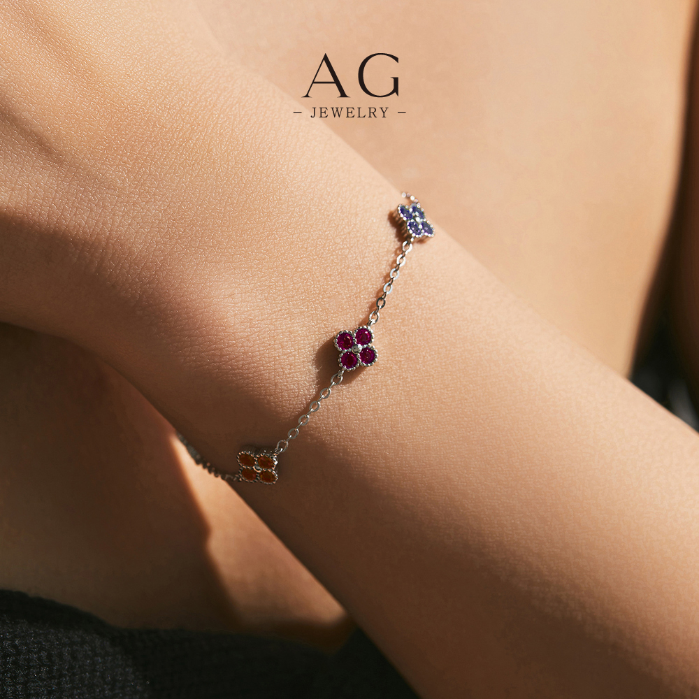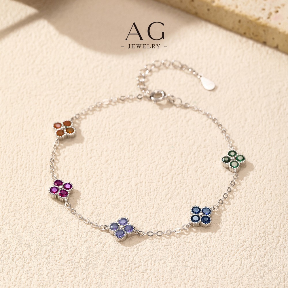 AG JEWELRY Colorful Enamel Flower Bracelet 925 Sterling Silver Artistic Style AGRHB1871