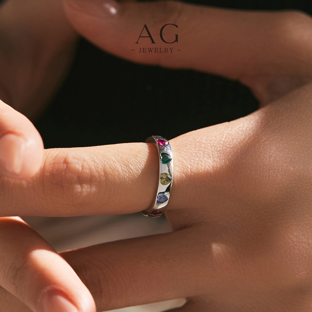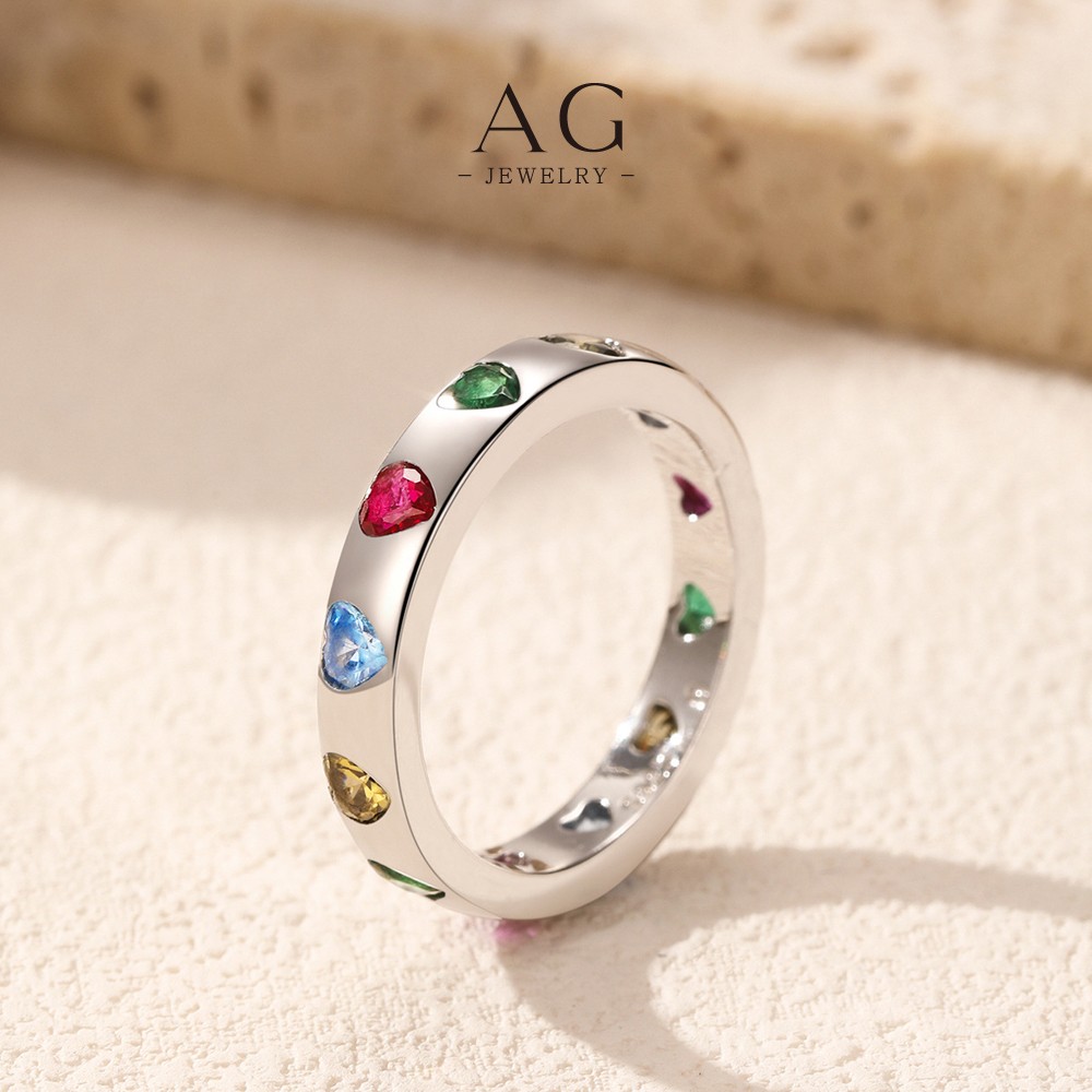 AG Multicolor Heart Zircon Ring 925 Sterling Silver Rainbow Love Token Jewelry AGRHR1913