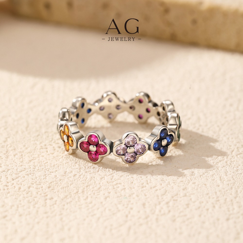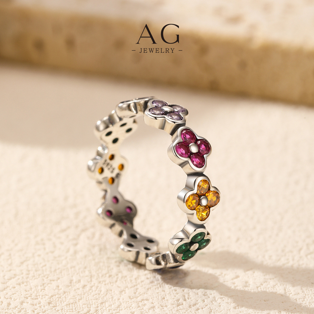 AG Enamel Floral Ring 925 Sterling Silver Painted Blossom Jewelry AGRHR1910