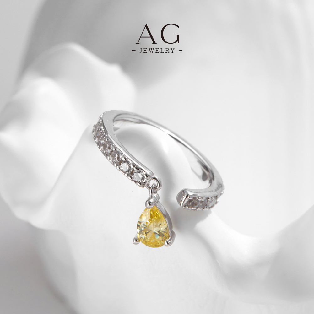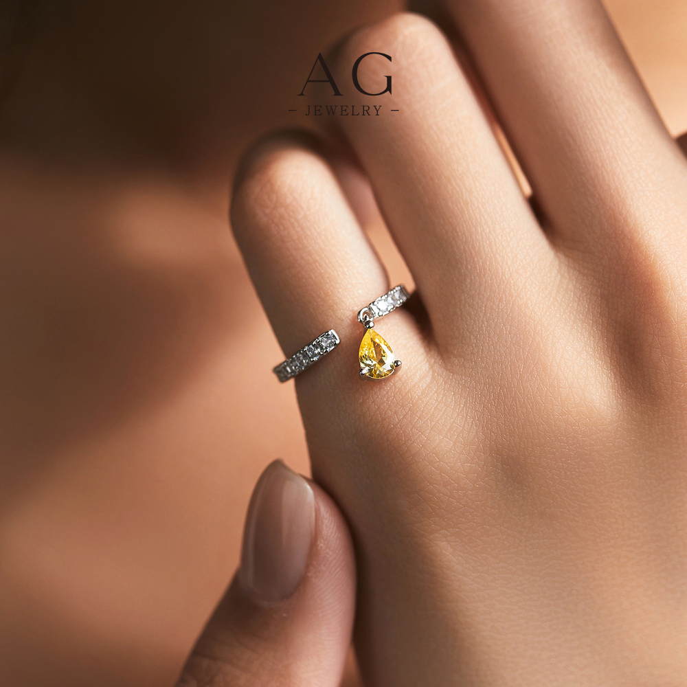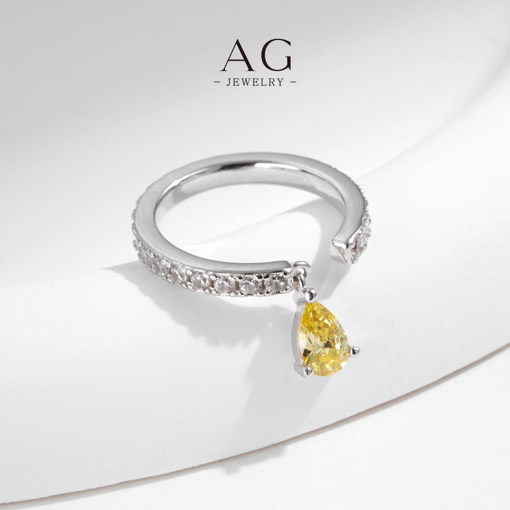 AG JEWELRY Champagne Teardrop Zircon Ring 925 Sterling Silver Luxury Bridal Jewelry AGRHR1837