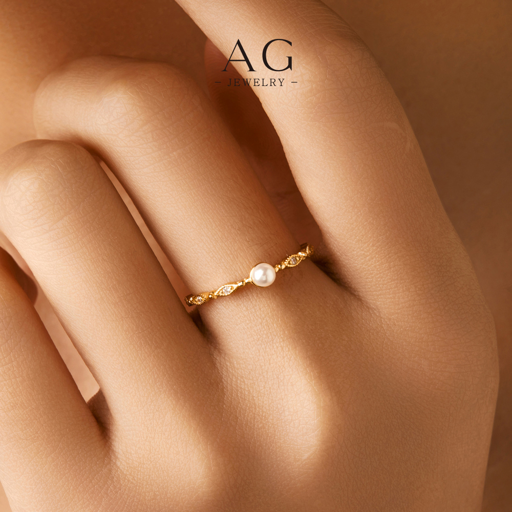 AG Pearl Accent Ring 925 Sterling Silver Ocean Elegance Jewelry AGRHR1641