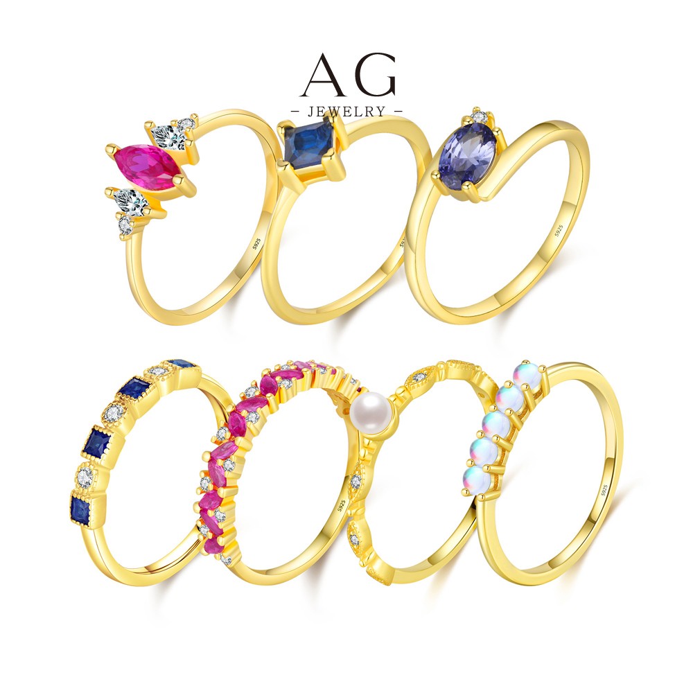 AG Navy Zircon Statement Ring 925 Sterling Silver Midnight Sky Jewelry AGRHR1640