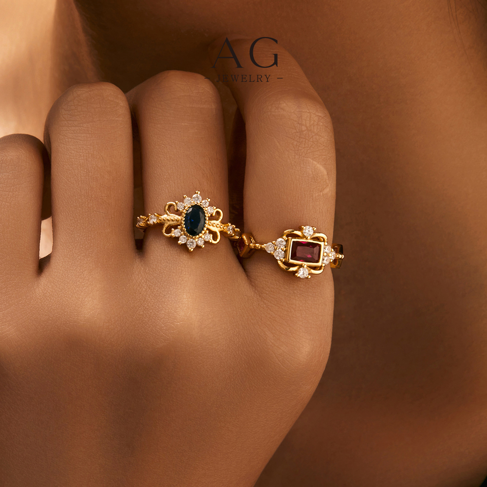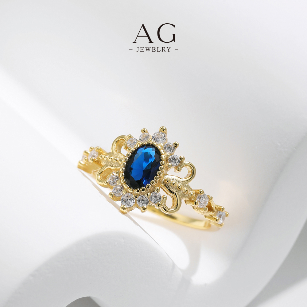 AG Royal Blue Zircon Ring 925 Sterling Silver Regal Splendor Jewelry AGRHR1635