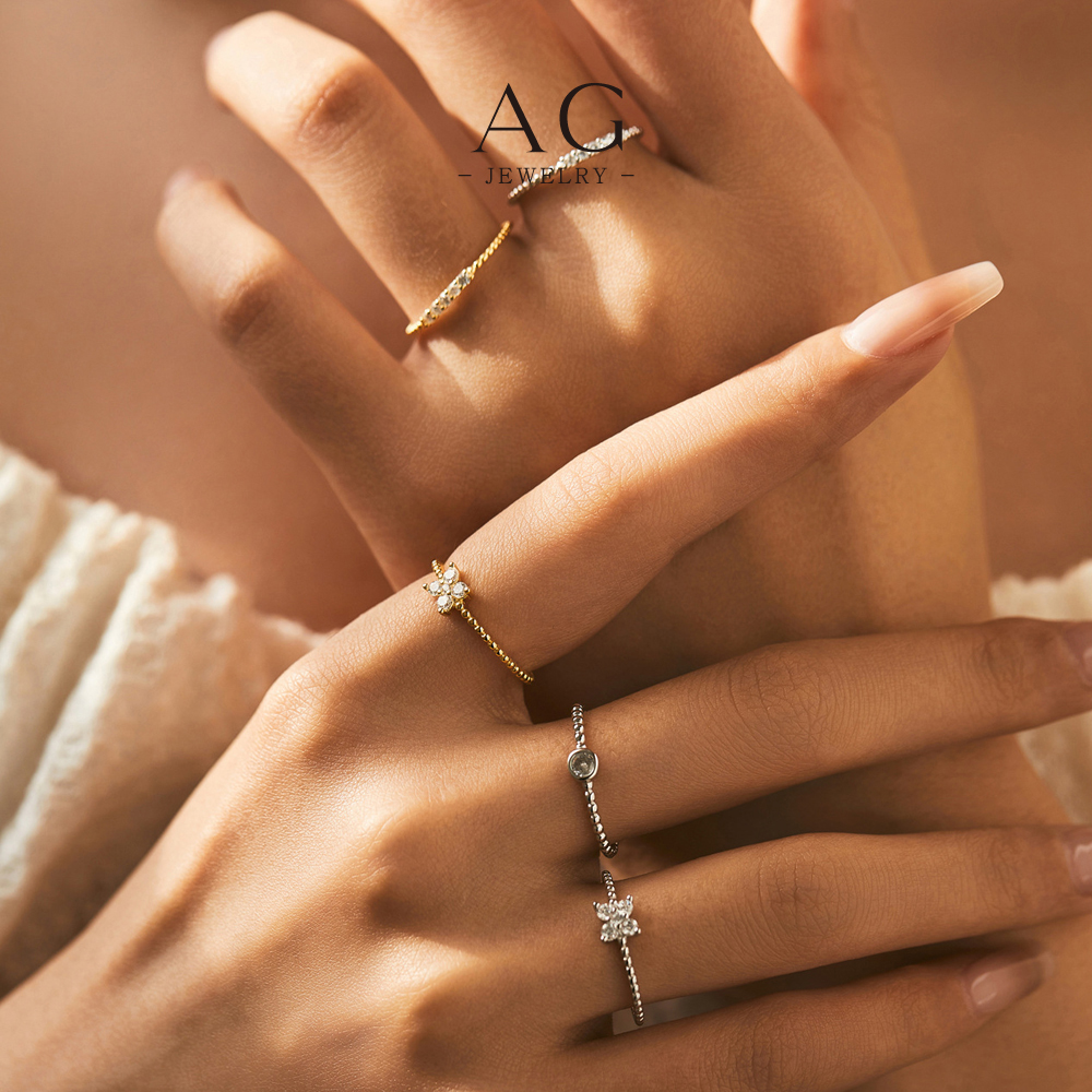 AG Floral Cluster Beaded Ring 925 Sterling Silver Garden Romance Jewelry AGMSR0051-2