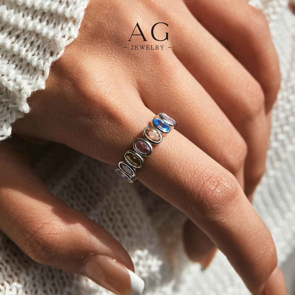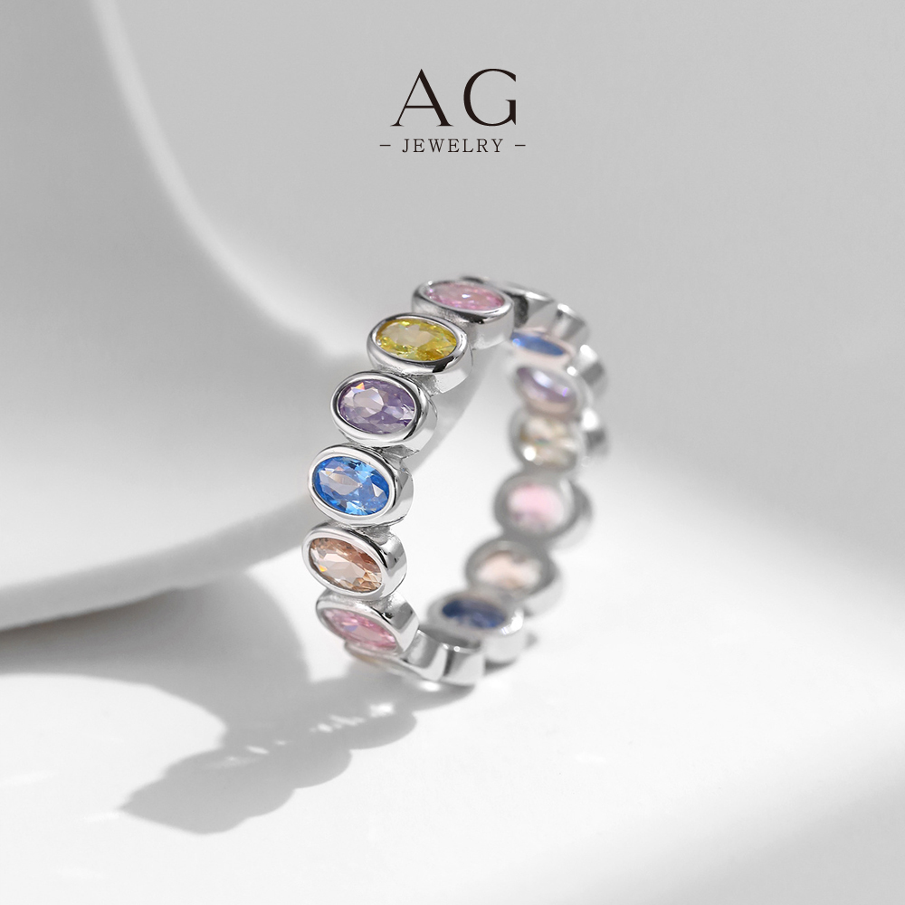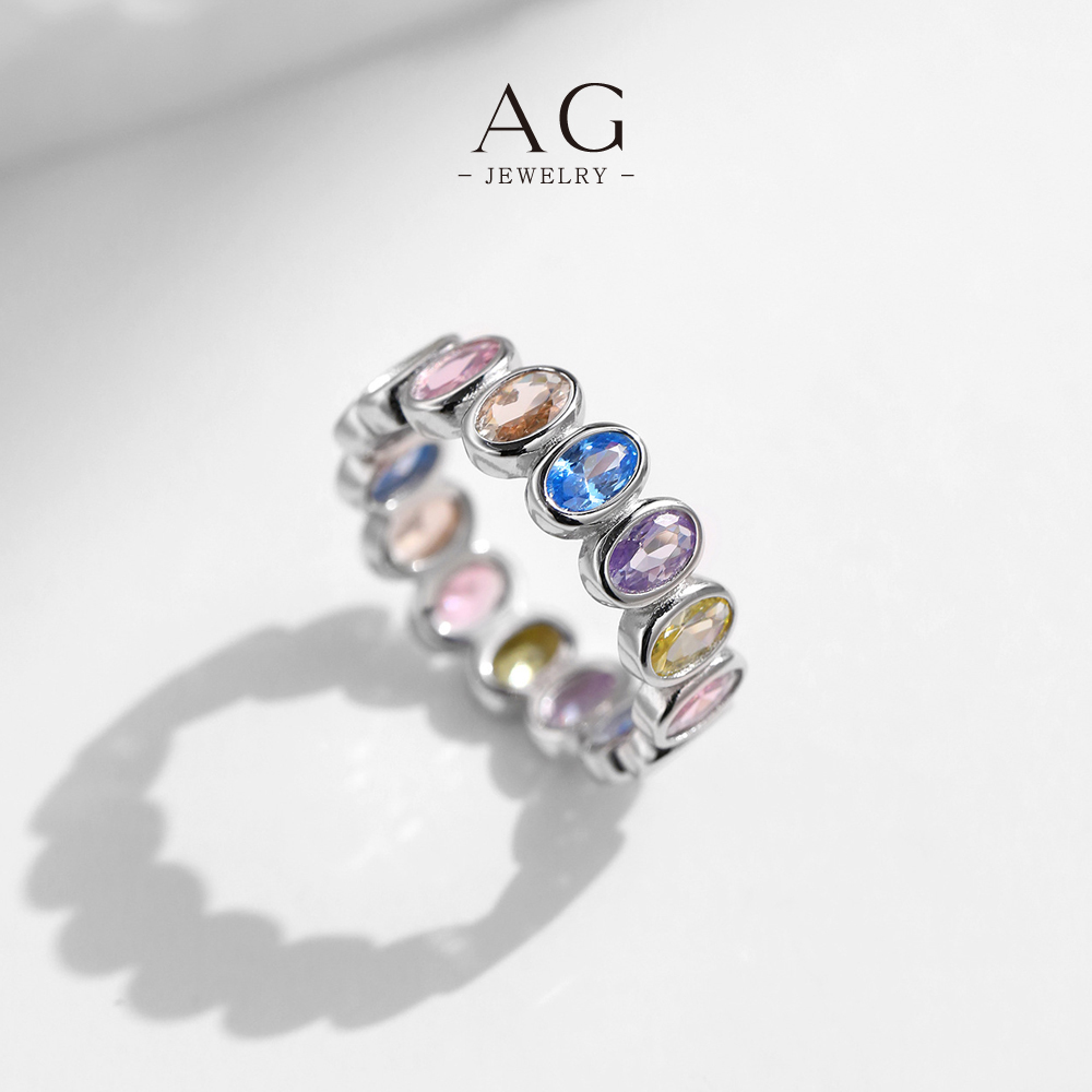 AG Rainbow Zircon Ring 925 Sterling Silver Prismatic Splendor Jewelry AGRHR1609